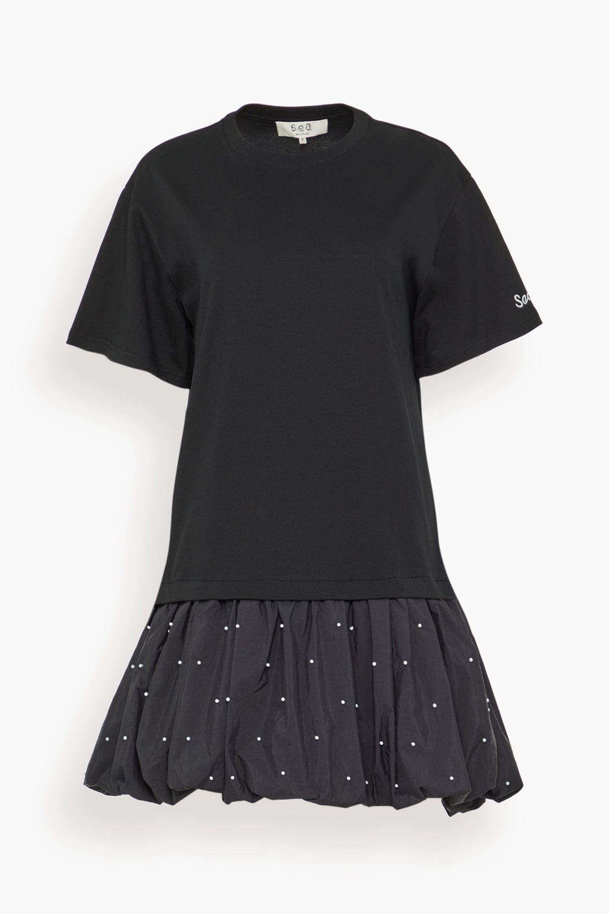 The SEA Alberta Pearl T-Shirt Dress features the feminine details you love from this designer. This t-shirt dress has a drop waistline with a bubble skirt adorned in pearls. Wear yours with boots and a clutch.