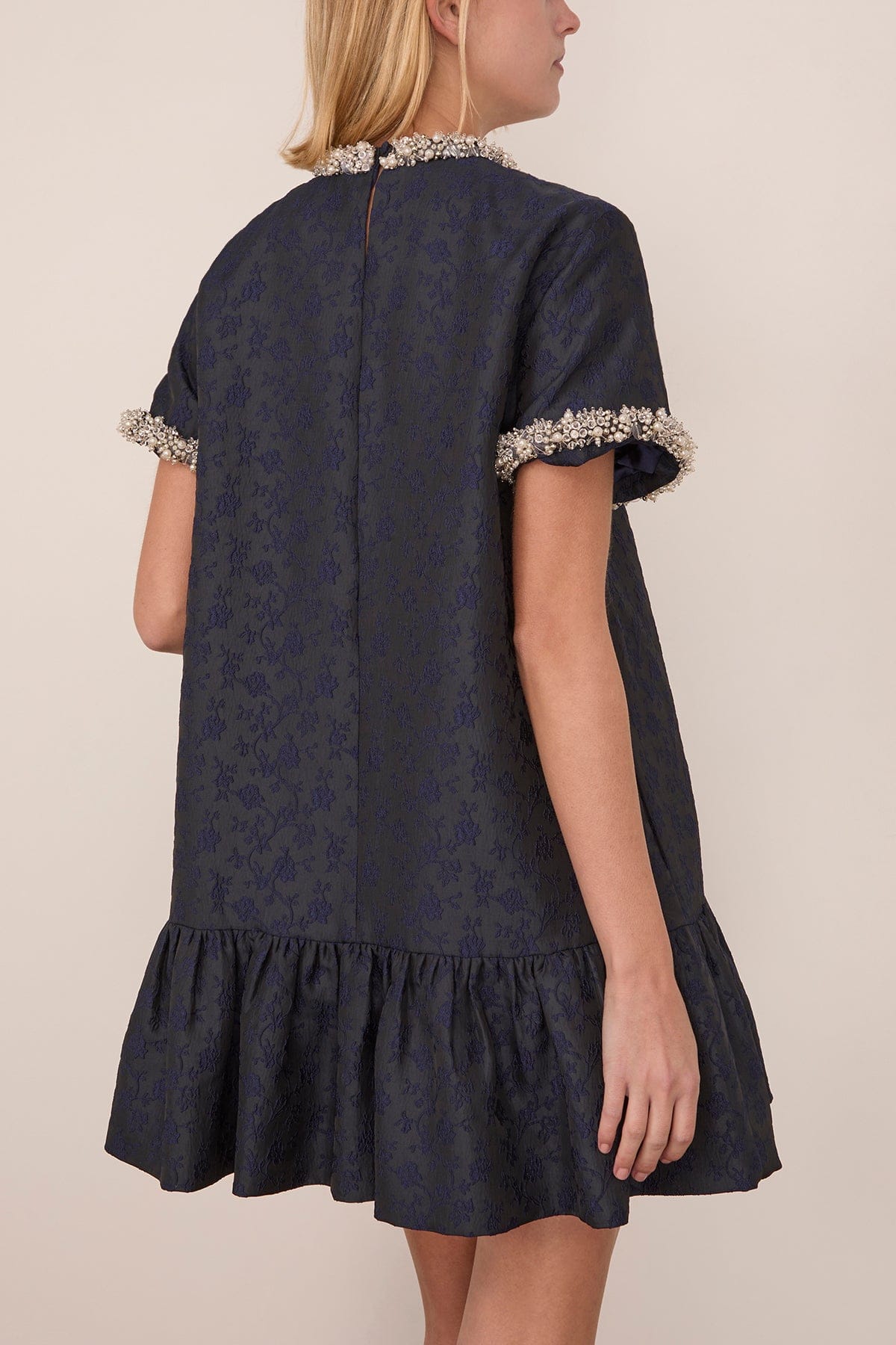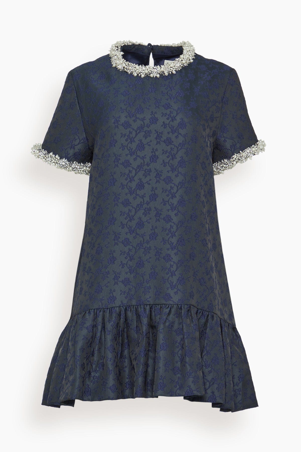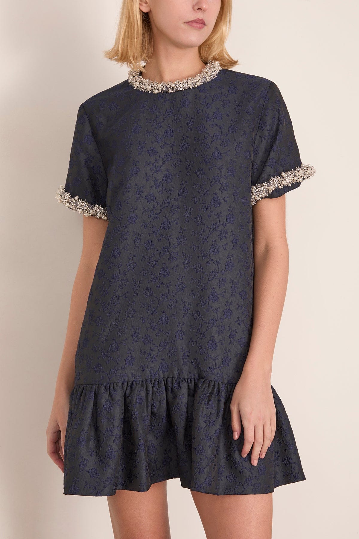 The Simkhai Alison Short Sleeve Mini Dress will have you ready for an evening out. This mini dress features a flared hemline with a playful crystal embellished neckline and sleeves. Wear yours with heels and a clutch.