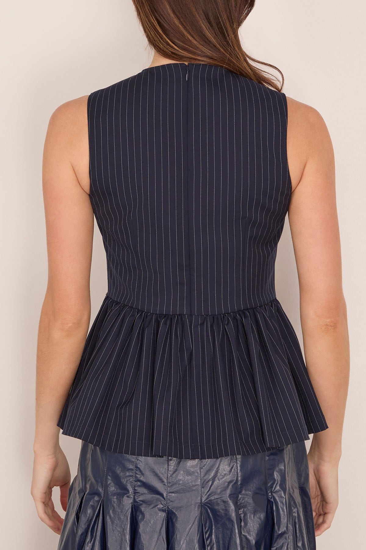 The Tanya Taylor Astrid Embellishment Top will easily take you from work to drinks. This sleeveless top is crafted in a classic pinstripe with embellished sides. Wear yours with the matching pants and heels.