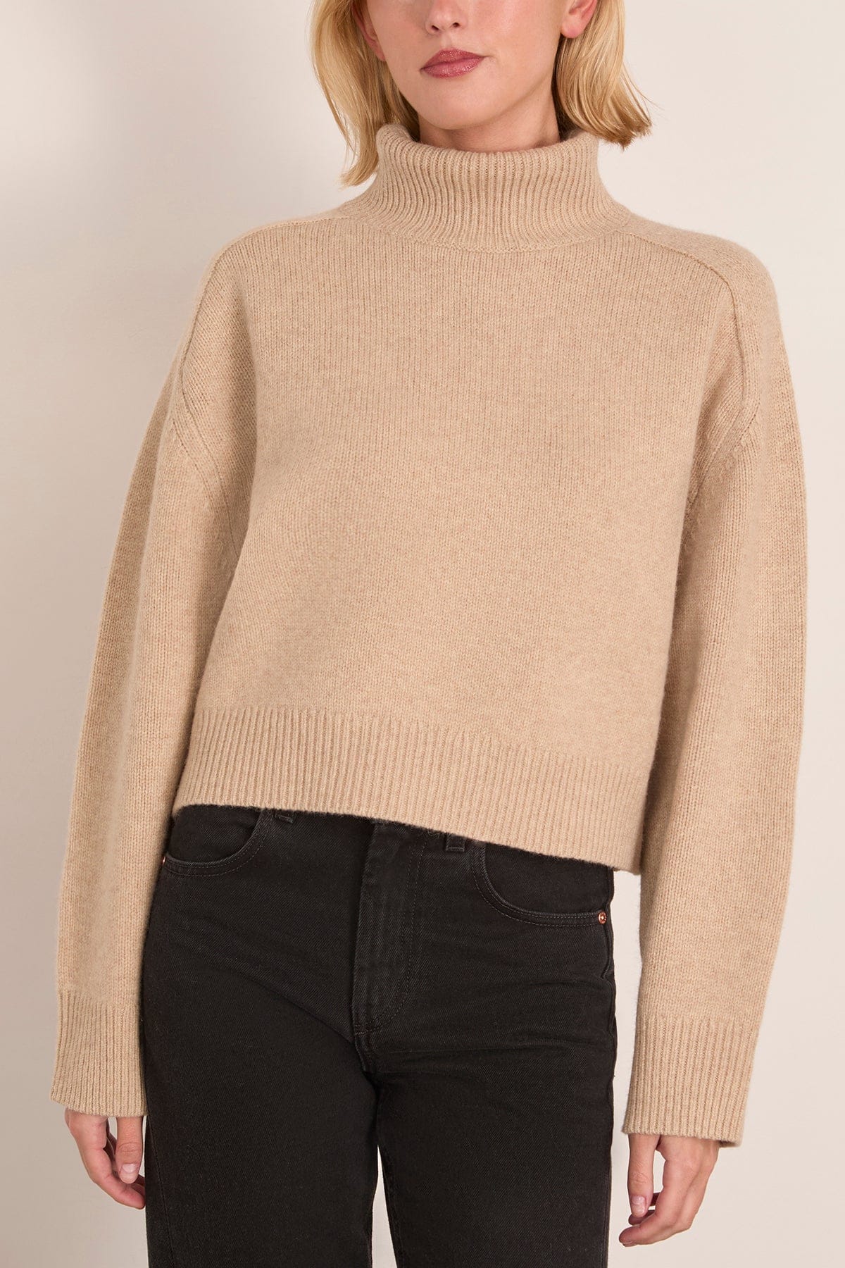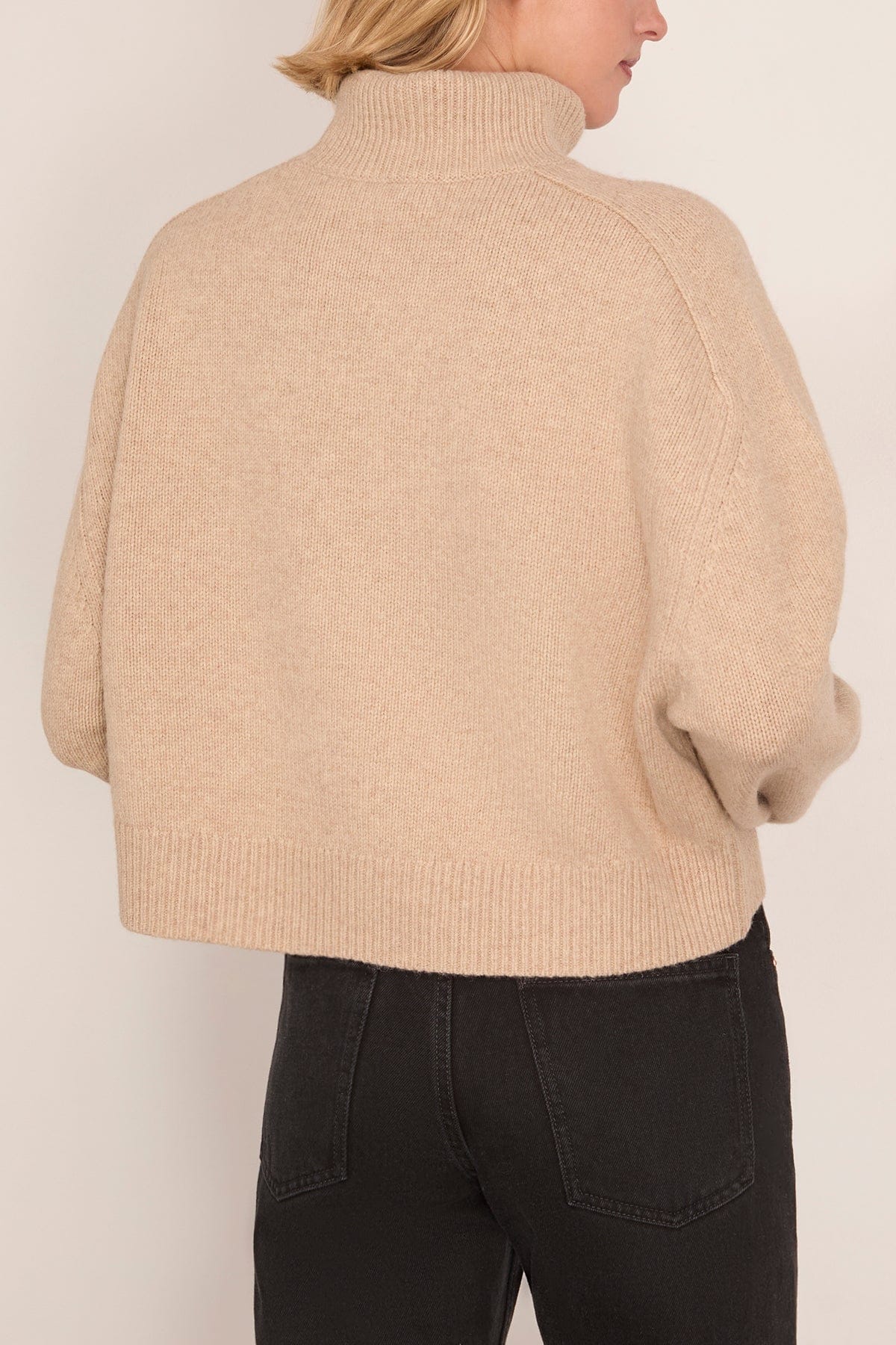 The Vanessa Bruno Ballerine Top is crafted in a warm wool and yax blend. This sweater features a boxy, cropped silhouette with a ribbed turtleneck. Wear your with jeans and boots.