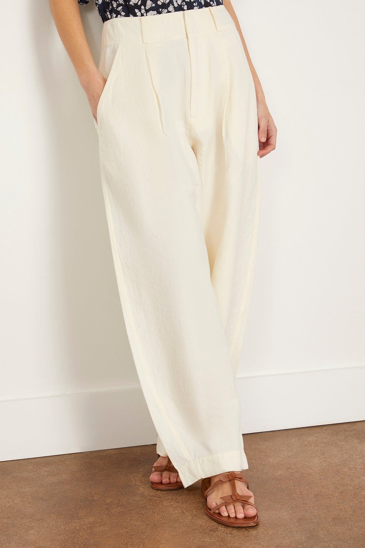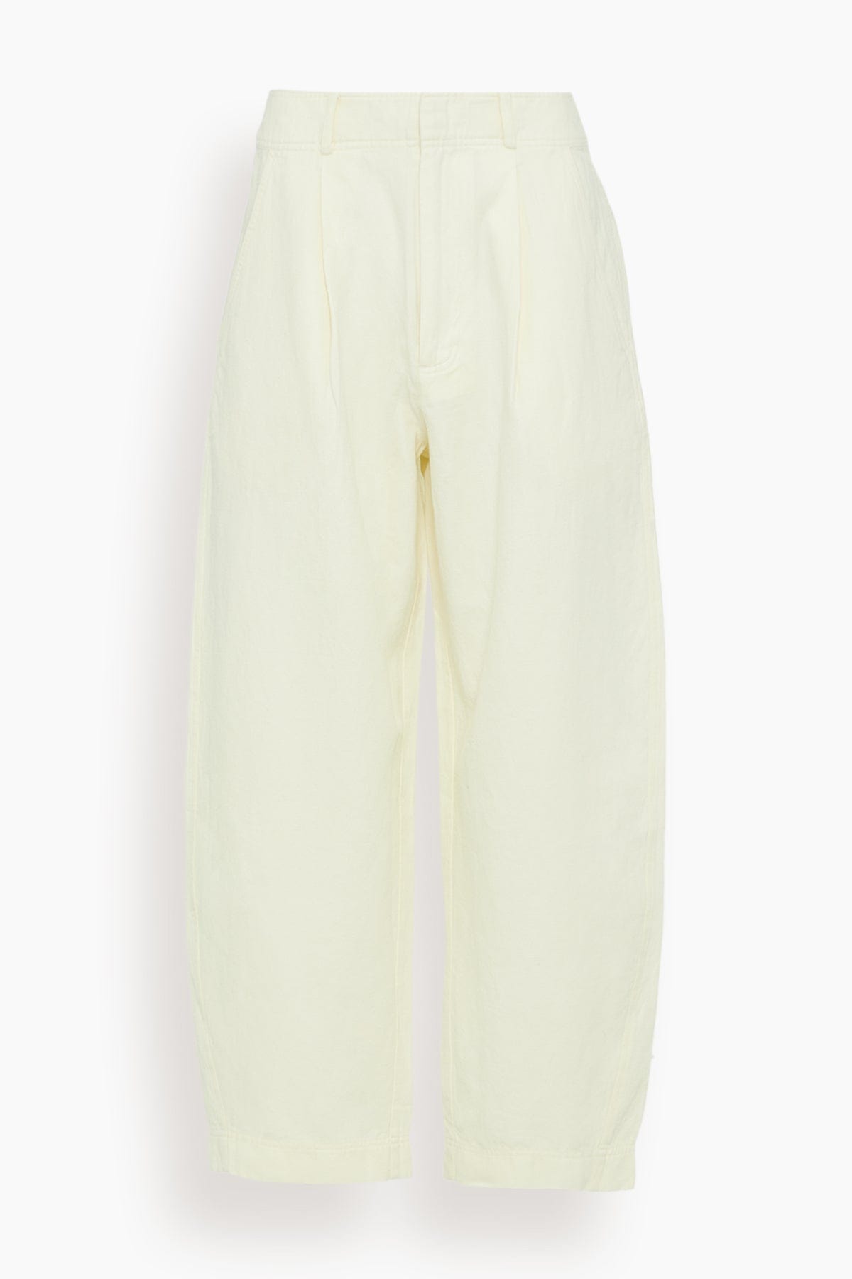 The Apiece Apart Bari Crop Trouser in Cream is the pant we're styling endlessly, fit with front pleats, side pockets, and a cool barrel leg. Crafted from a soft cotton/linen blend.