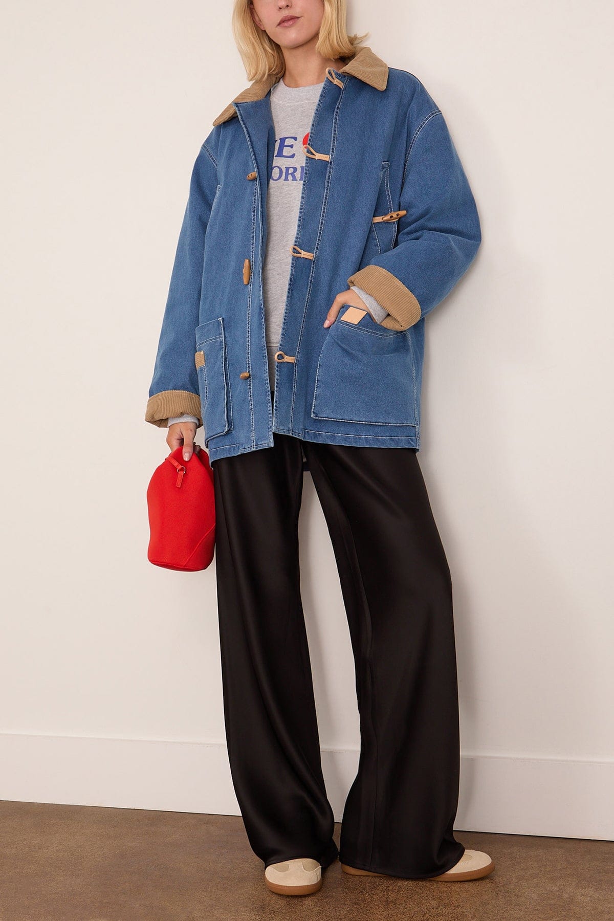 Meet your new go to layer. The Hunter Bell Indigo Blue barn jacket is crafted from garment-washed stretch canvas for a soft, lived-in feel from the very first wear. The oversized silhouette features contrast cuffs, a roomy patch pocket, and a classic toggle front closure that brings an easy and undeniably cool touch. Designed for transitional season dressing, it layers effortlessly over knits, dresses, and denim and continues to get better with time.
