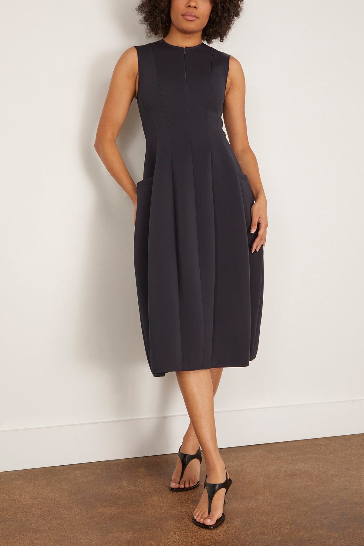 The Tibi Bonded Twill Sleeveless Sculpted Dress features the minimalistic look you love from this designer. This midi dress has a subtle fit and flare silhouette with a zip front detail. Wear yours with flats and a shoulder bag