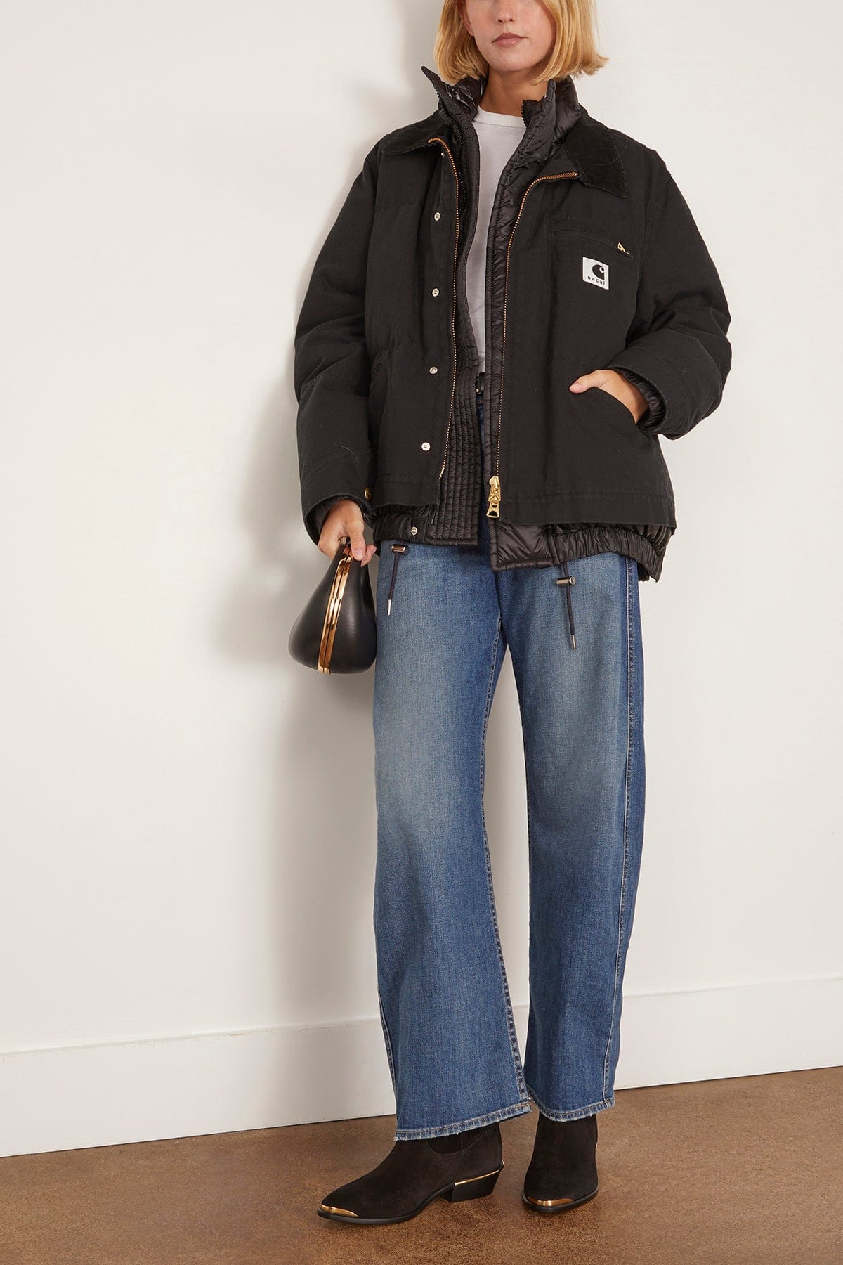The Sacai Carhartt WIP Washed Duck Puffer Jacket was crafted in collaboration with Carhartt. This jacket features the signature sporty vibe of Sacai with a zip front. Wear yours with trousers and boots.