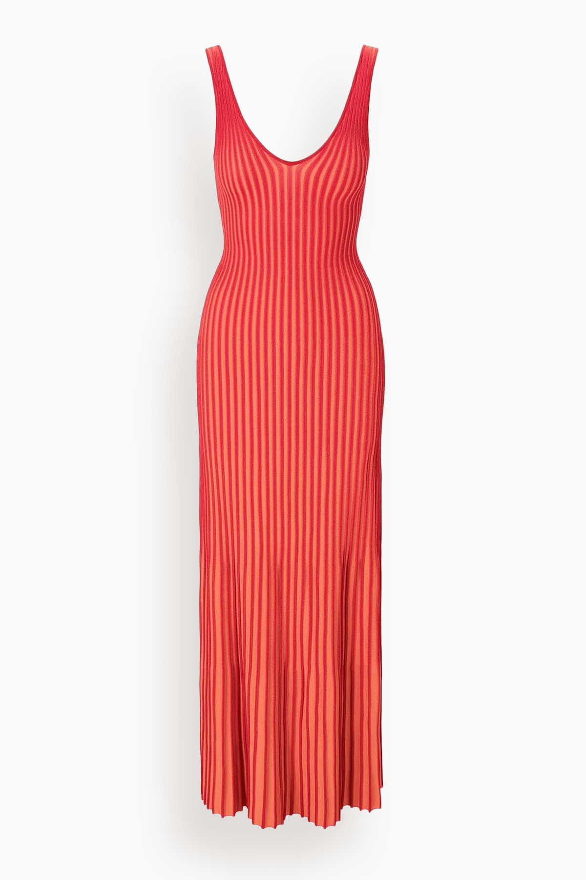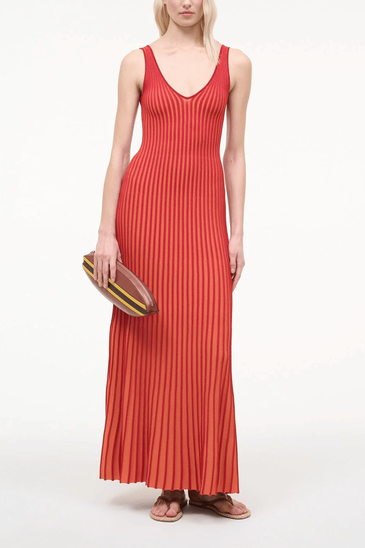 The Staud Claretta Dress is a beautiful addition to your wardrobe. You'll love the slim silhouette of this two-toned ribbed dress with an open back. Wear yours with heels and a clutch.