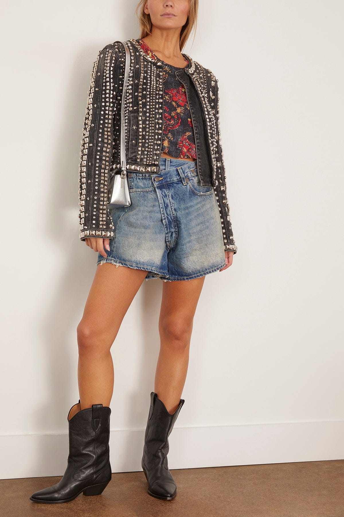 The R13 Crossover Short features their signature silhouette. You'll love the relaxed leg of these denim shorts with a unique crossover front detail. Wear yours with a t-shirt and boots.