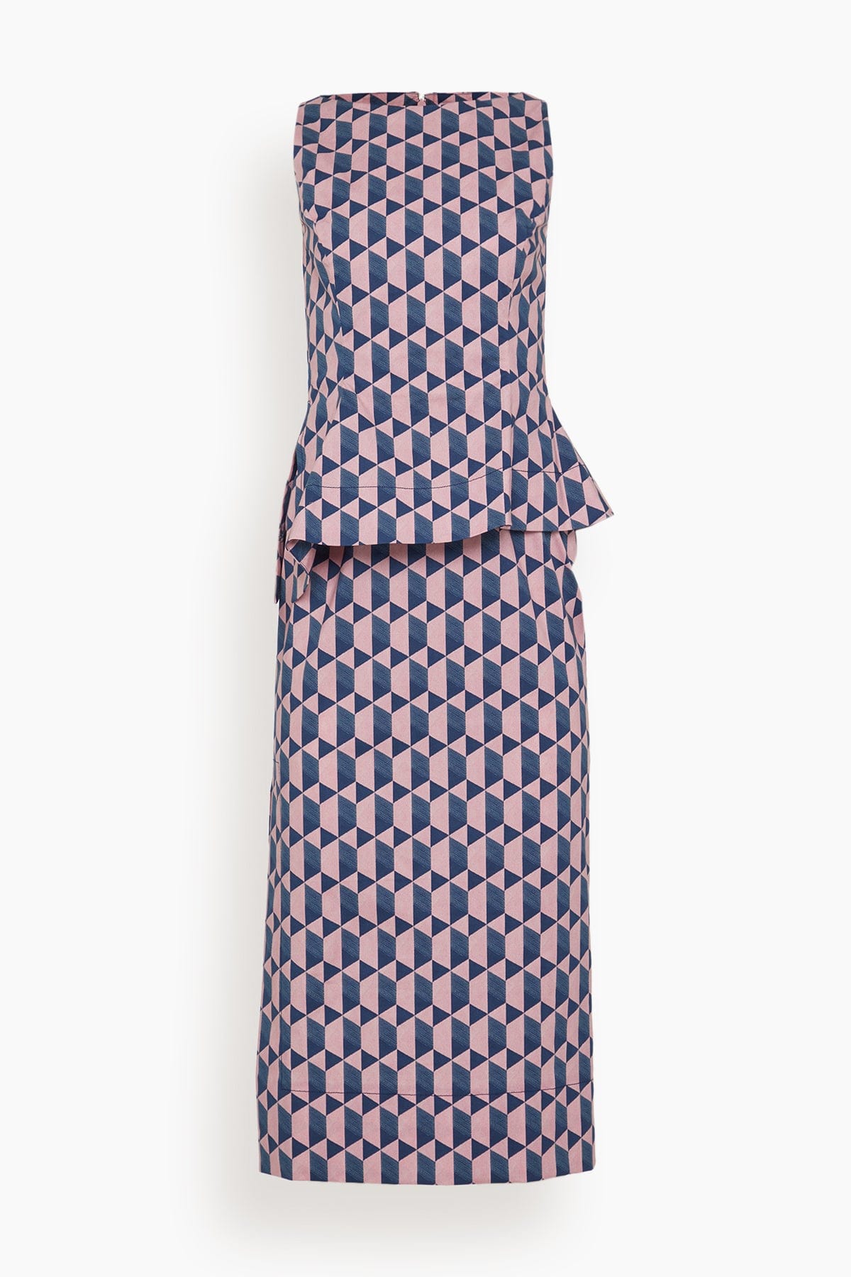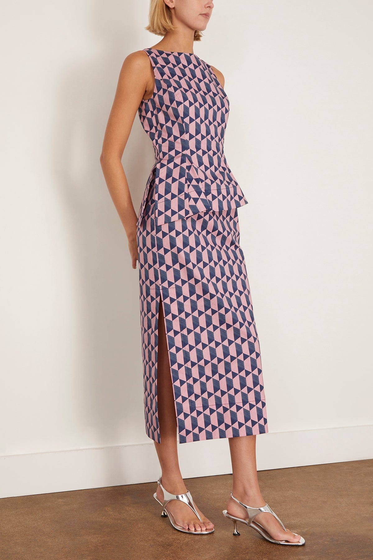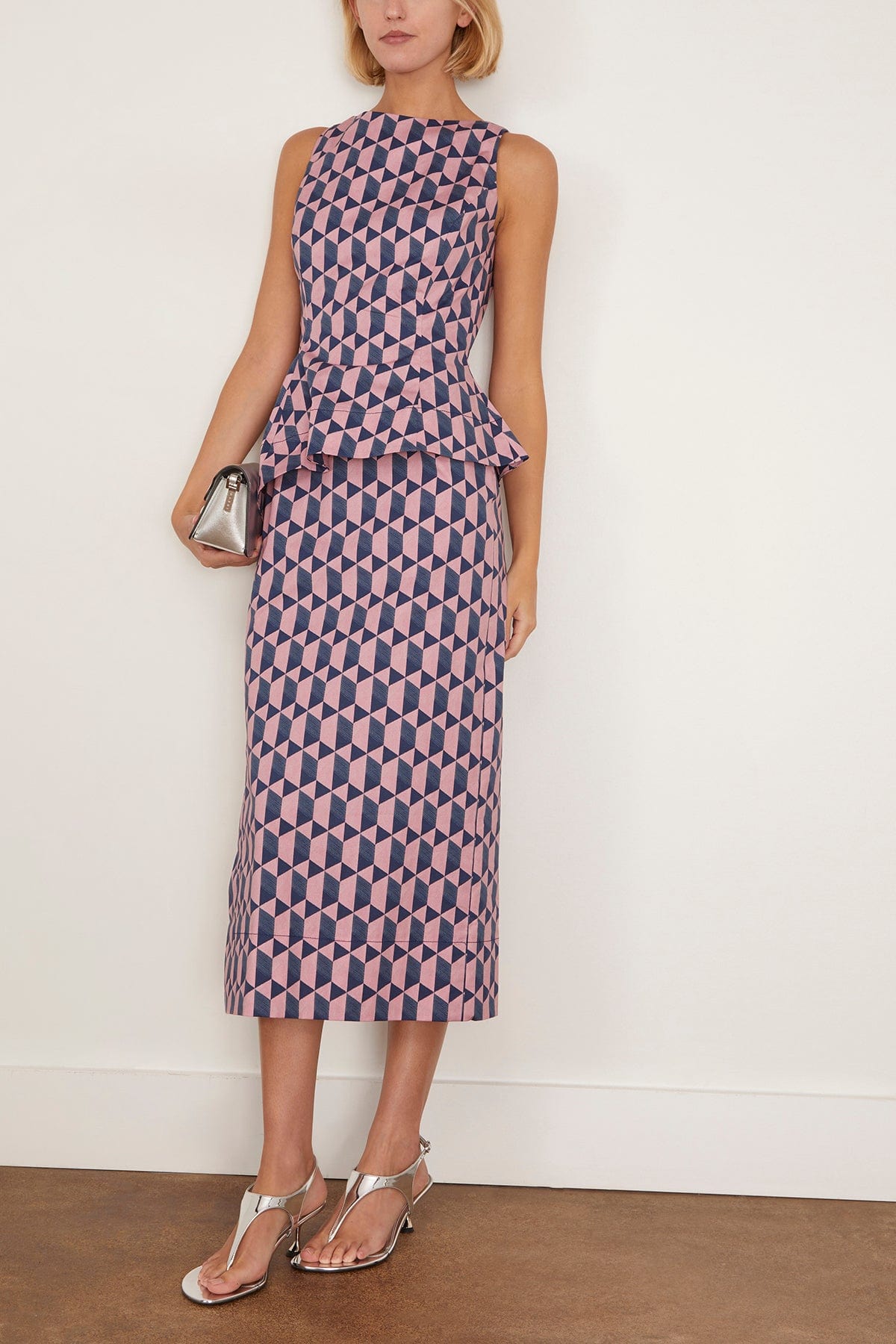 The Amir Taghi Danielle Dress is a standout piece from their Fall 25 Collection. This midi dress features a flattering peplum waistline in a bold geometric pattern. Wear yours with heels and a shoulder bag.