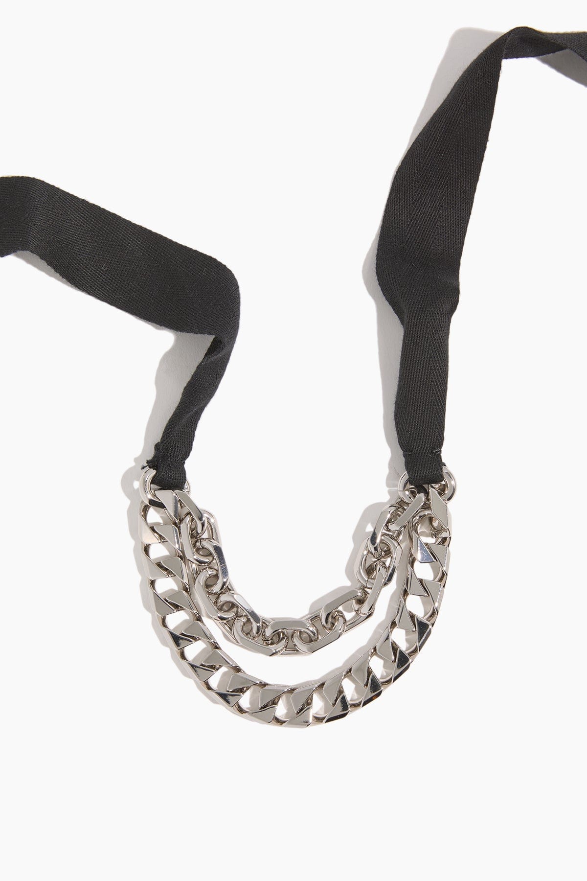 The Plan C Double Chain Necklace with Rib in Nikel Lucido will be a statement making necklace. You'll love the double strands of this chain necklace with a ribbon tie closure.