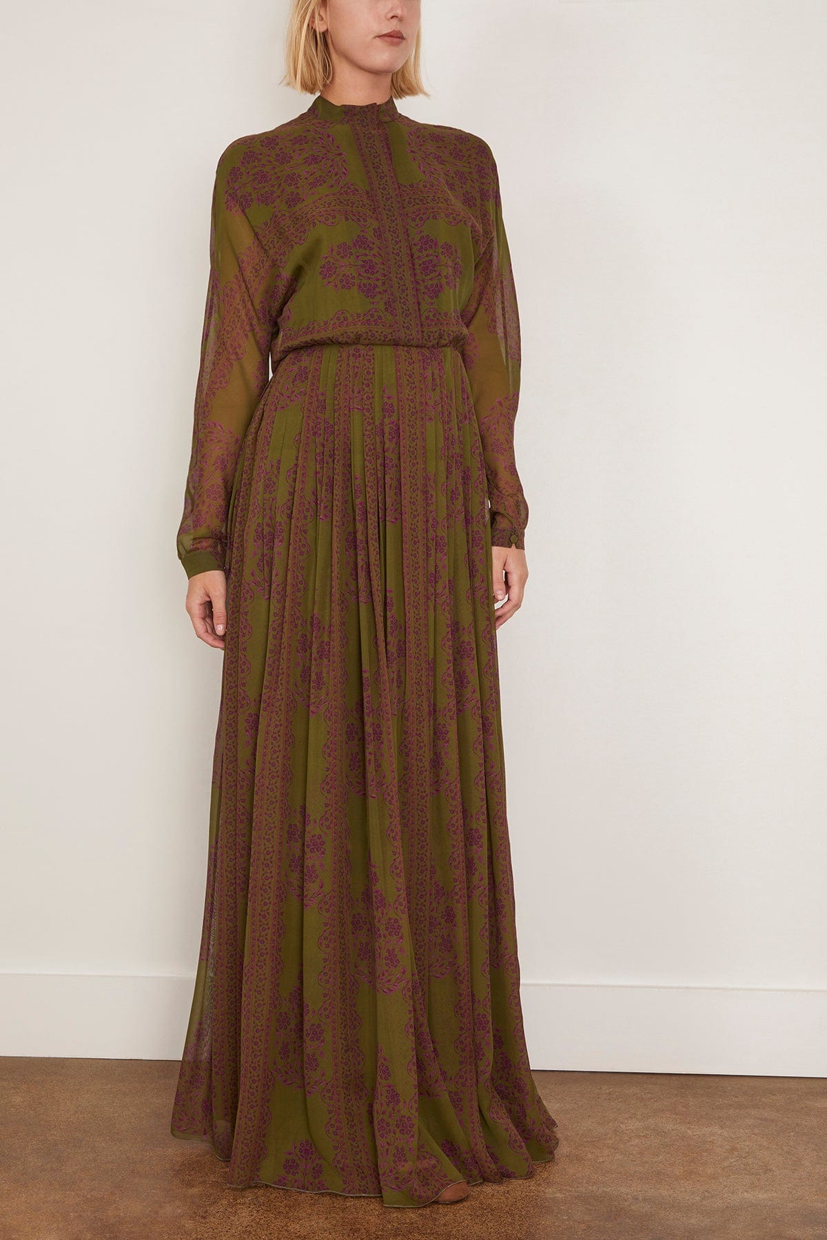 The Giambattista Valli Dress in Green Multi is crafted in a beautiful floral block print. You'll the classic concealed button front and pleated skirt of this maxi dress with a define waistband. Wear yours with heels and a clutch.