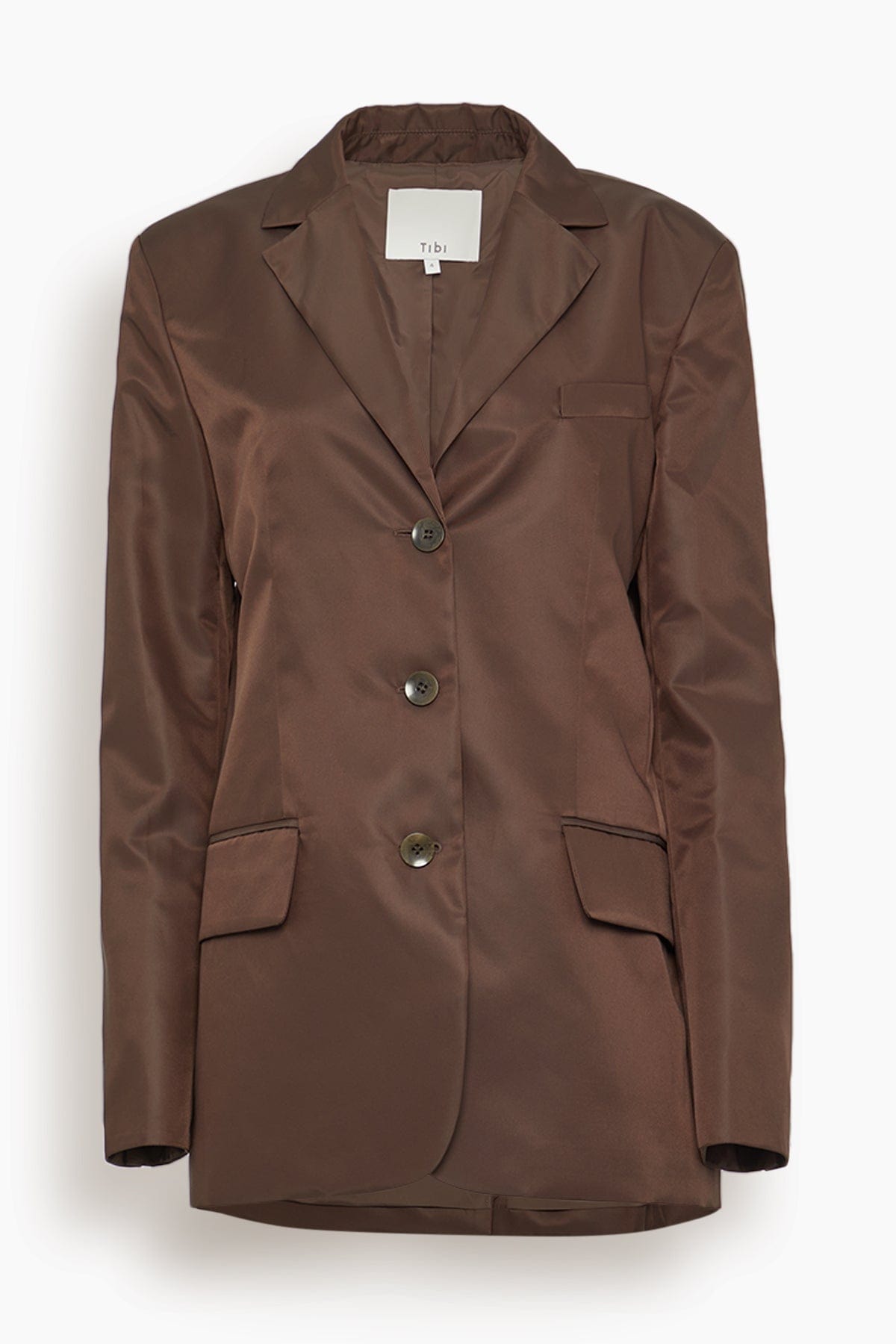 The Tibi Eco Nylon Max Blazer is the perfect blend of tailored and sporty. This blazer features a defined waistband and structured shoulders in a sporty water-repellent Italian eco nylon. Wear yours with the matching skirt and boots.