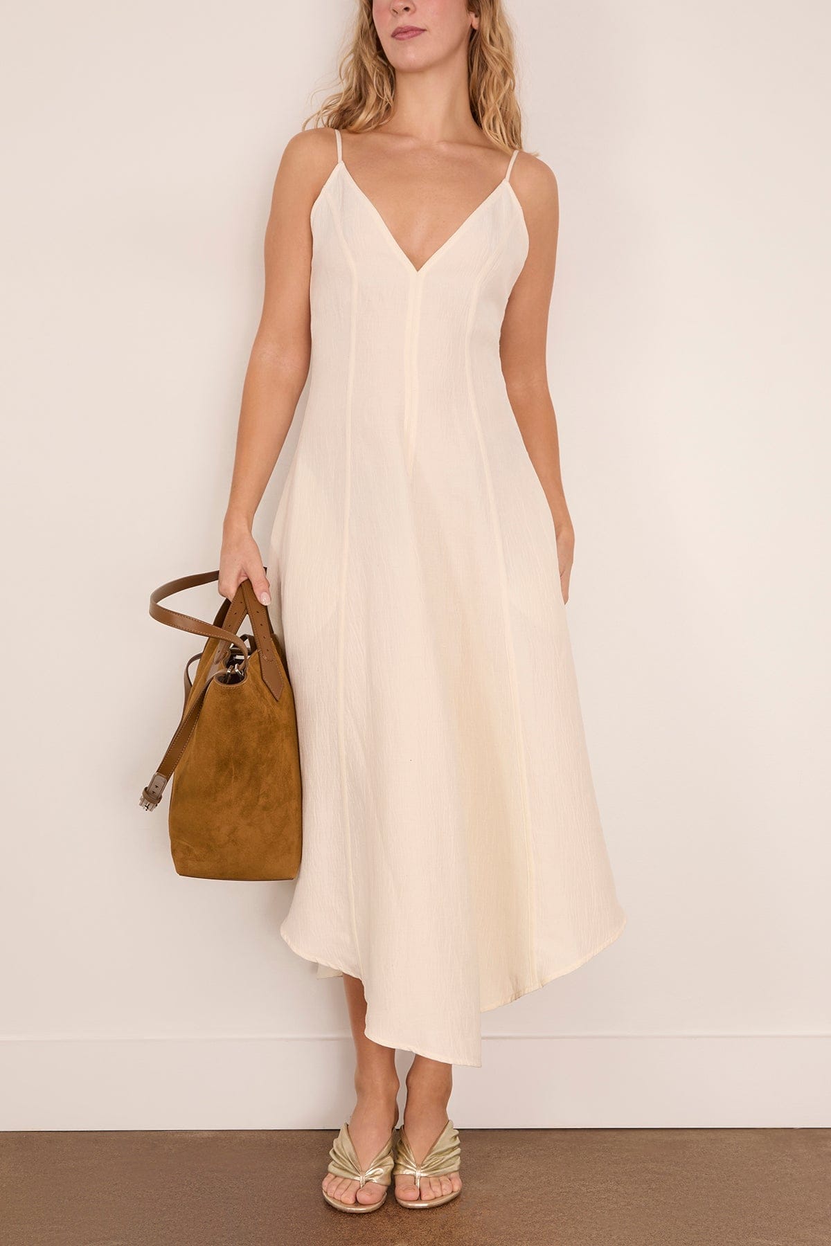 The Proenza Schouler Elaine Dress is an easy addition to your wardrobe. This midi dress features a deep v-neckline with a flowing skirt in a lightweight cotton and linen blend. Wear yours with flats and a shoulder bag.