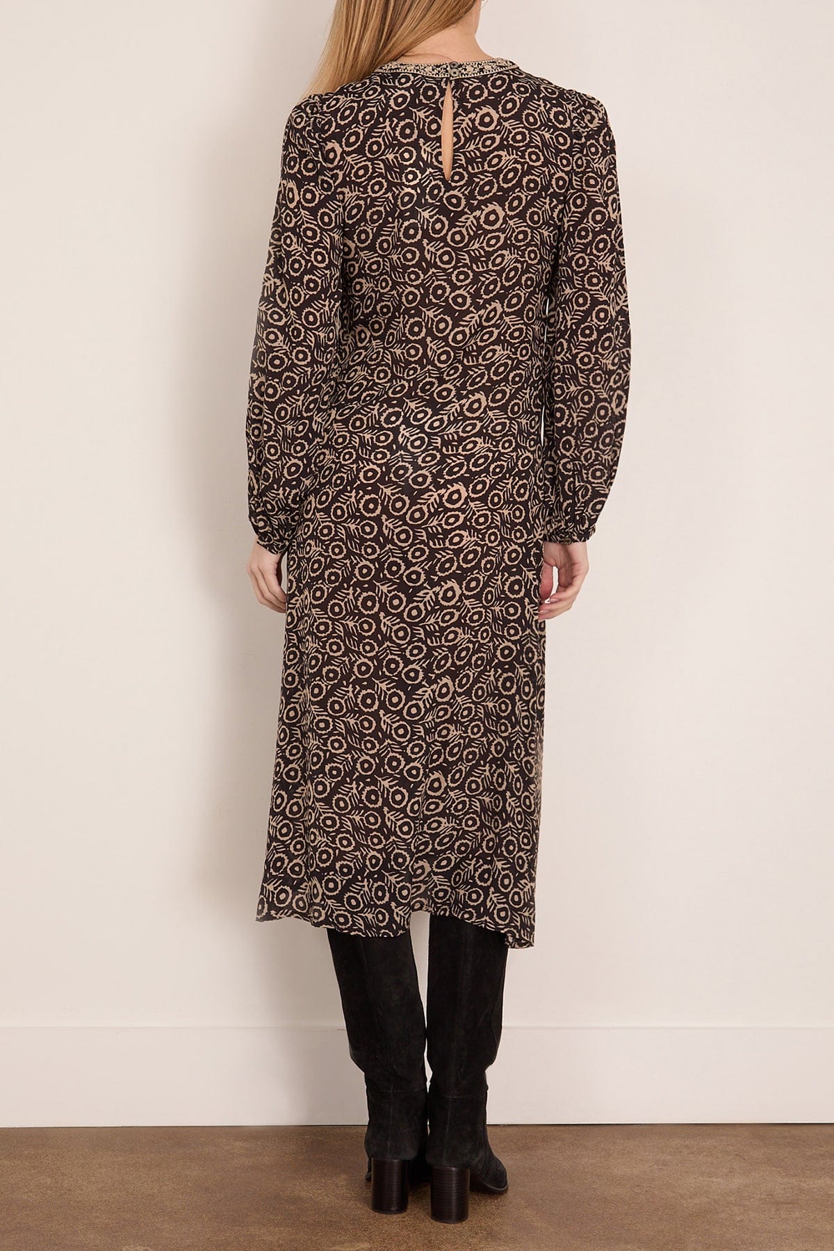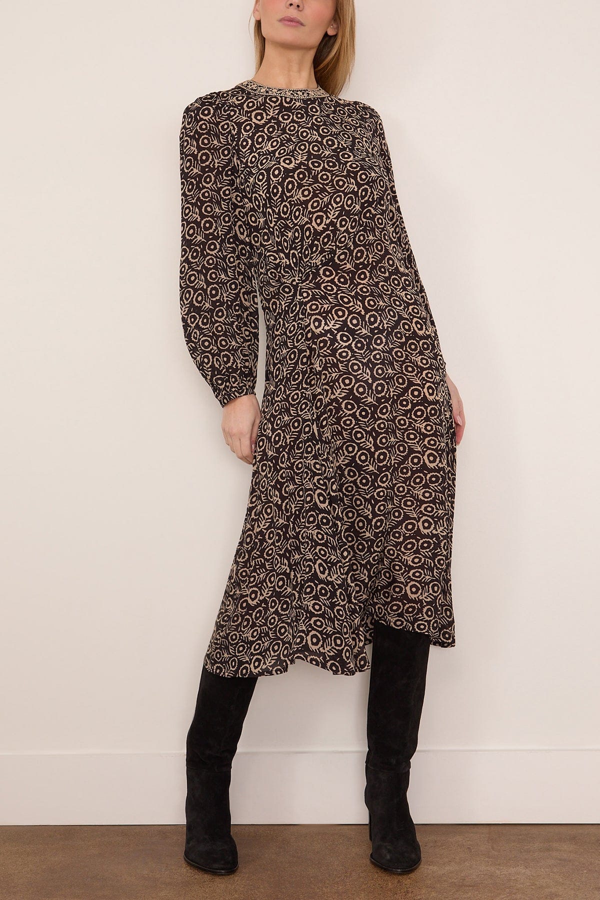 The SEA Emmeline Print Long Sleeve Midi Dress will be a staple in your wardrobe. This midi dress is crafted in an abstract print with puffed sleeves. Wear yours with boots and a shoulder bag.