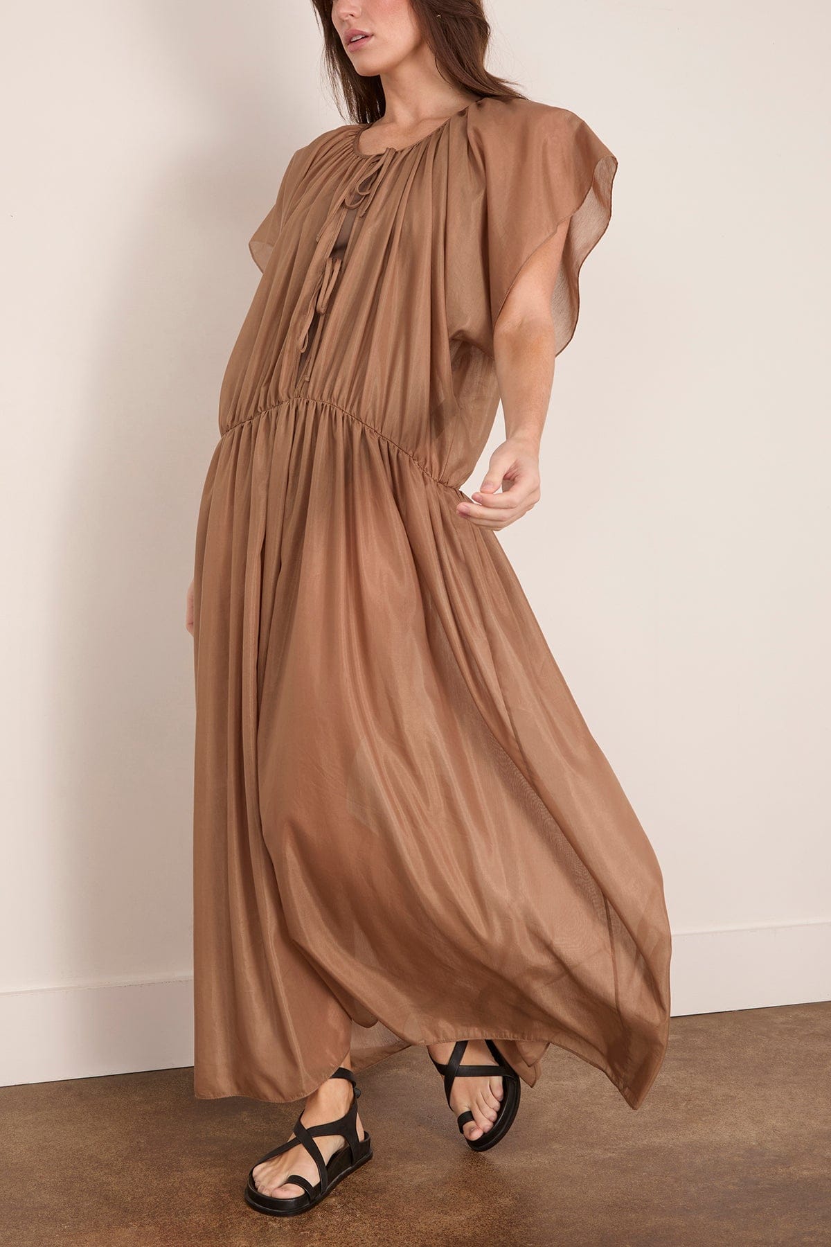 The More Noir Esther Dress is a great addition to your wardrobe. This maxi dress features feminine flutter sleeves in a lightweight cotton and silk blend. Wear yours with sandals and a shoulder bag.