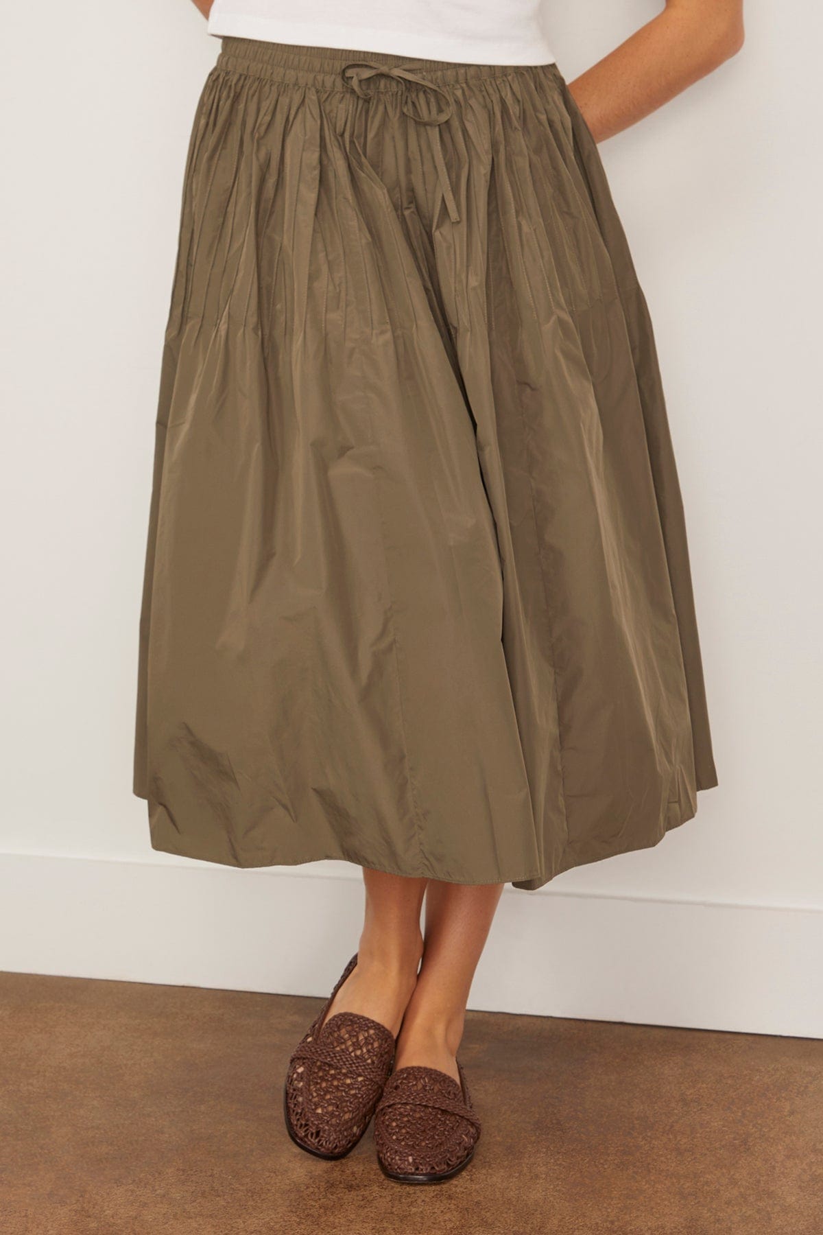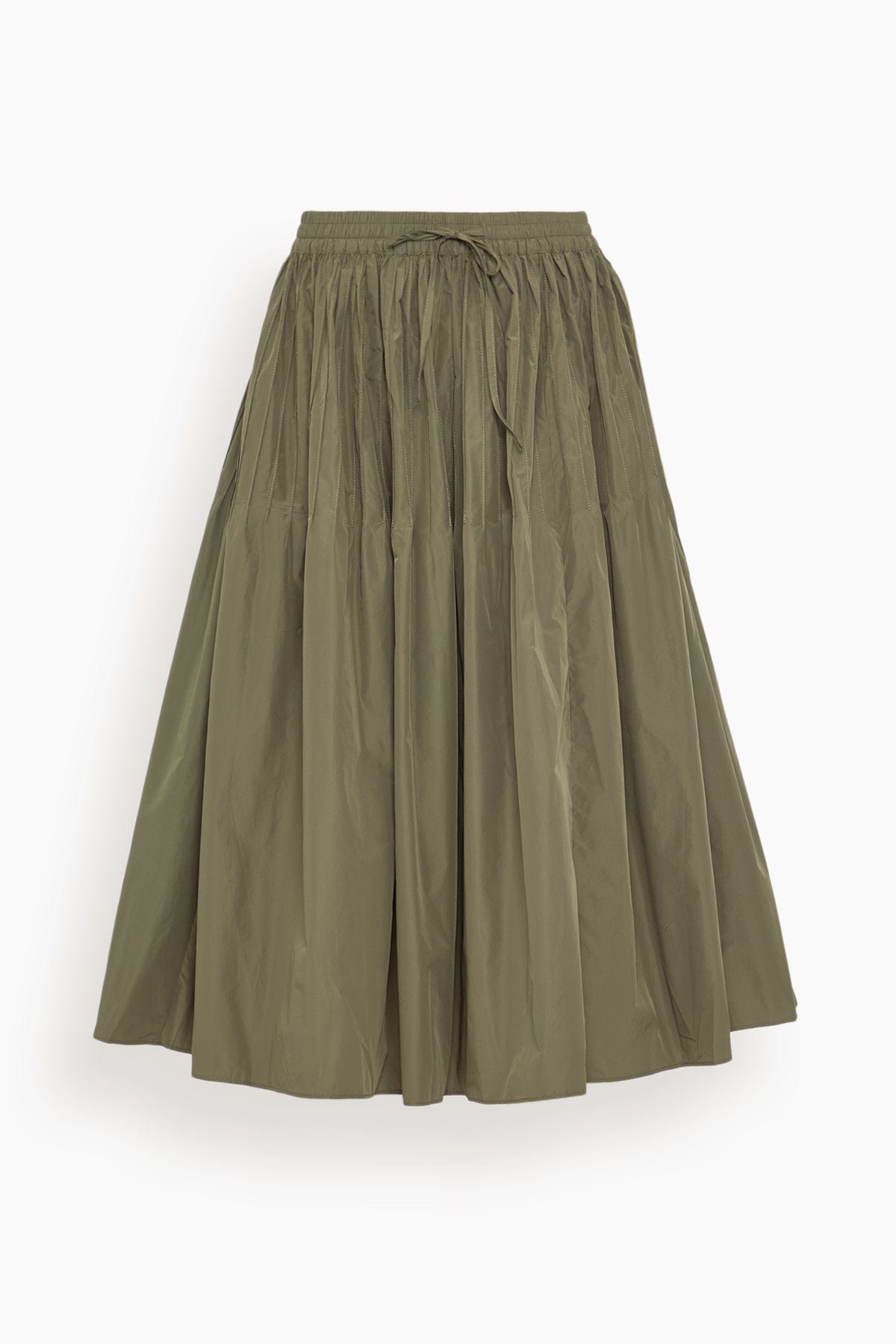 The Saint Art Eva Midi Skirt is an easy addition to your fall wardrobe. This midi skirt is crafted in the perfect shade of olive green with beautiful pintuck details along the waistline. Wear yours with a sweater and boots.