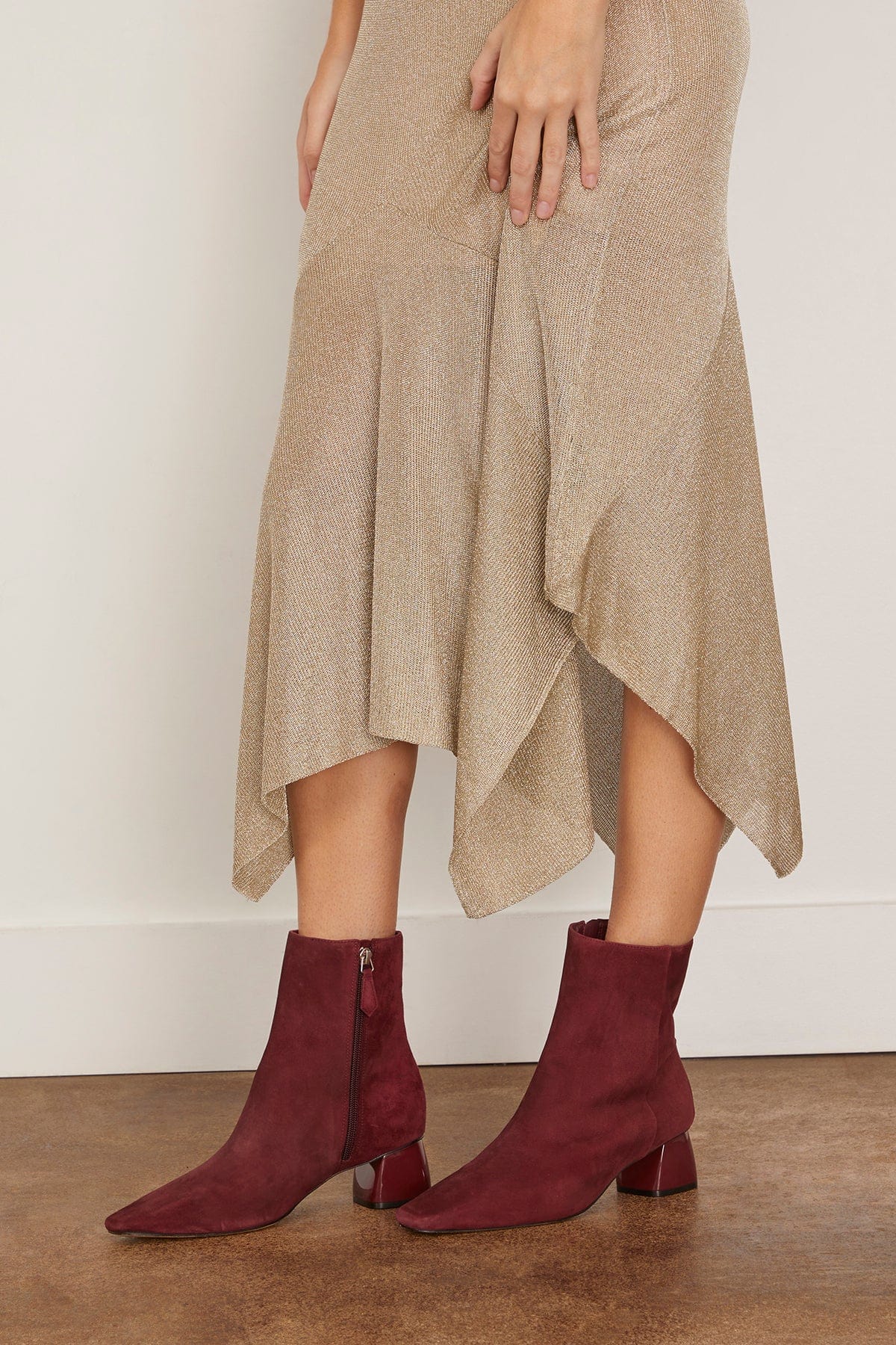The Marion Parke Evelyn Bootie are a twist on classic. These ankle boots are crafted in suede with a square toe with a rounded block heel.