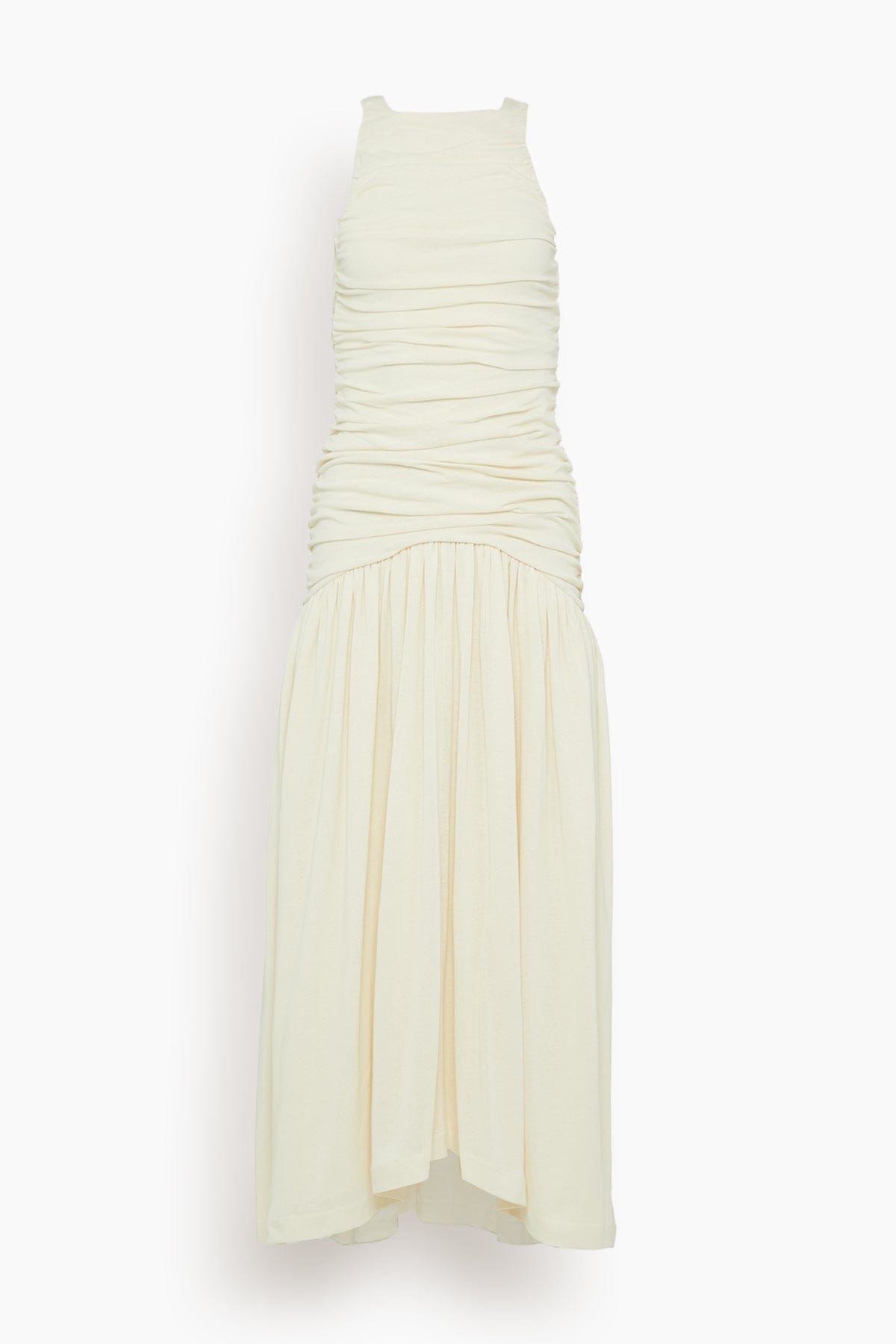 The Bite Studios Evidente Shoulder Dress features their signature silhouette. You'll love the flattering ruching along the bodice of this midi dress with a flowing skirt. Wear yours with heels and a clutch.