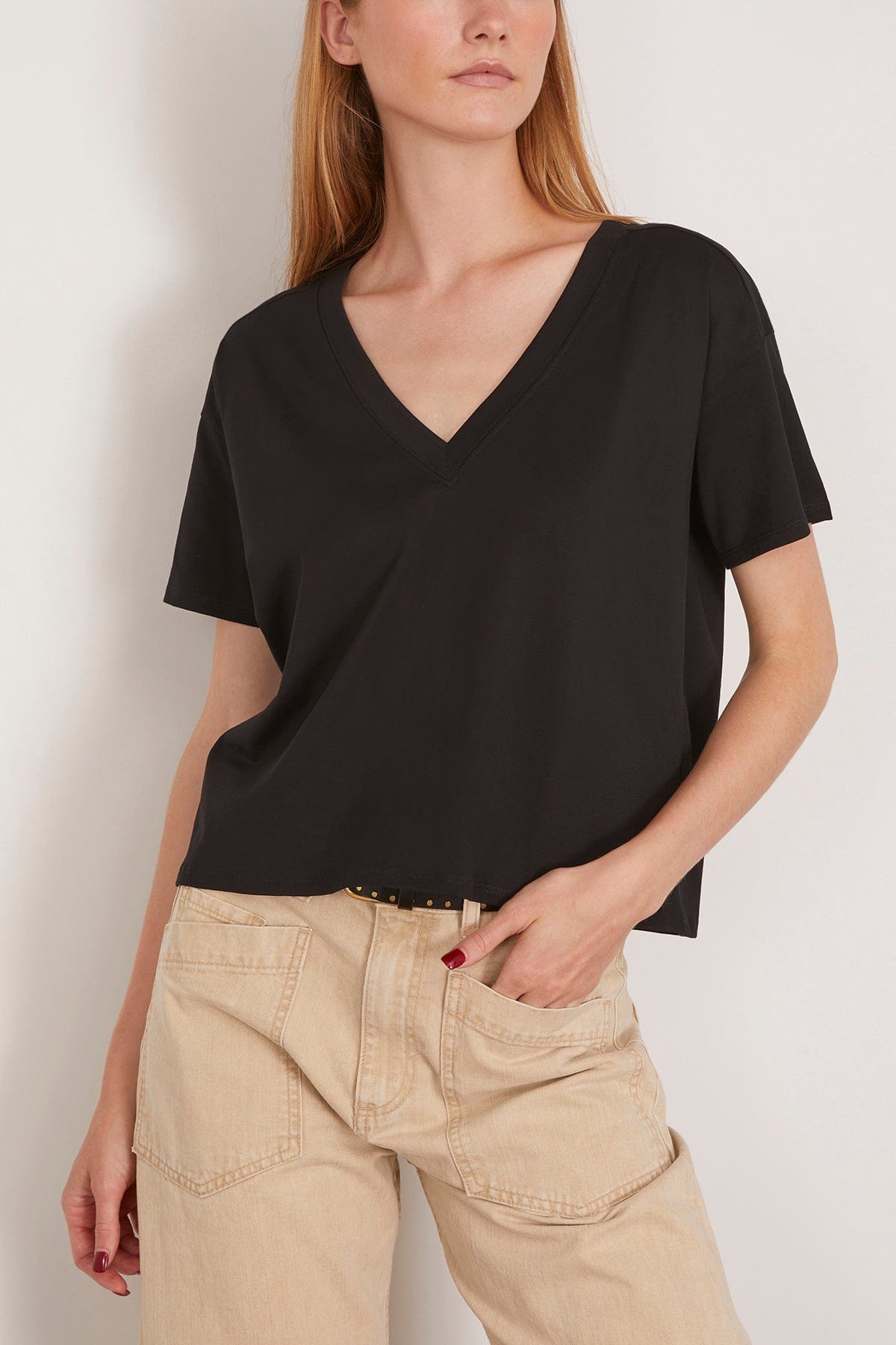 The Loulou de Saison Faaa V-Neck T-Shirt will quickly become a staple in your wardrobe. This t-shirt features a boxy silhouette and classic v-neckline in supima cotton. Wear yours with jeans and a sweater.