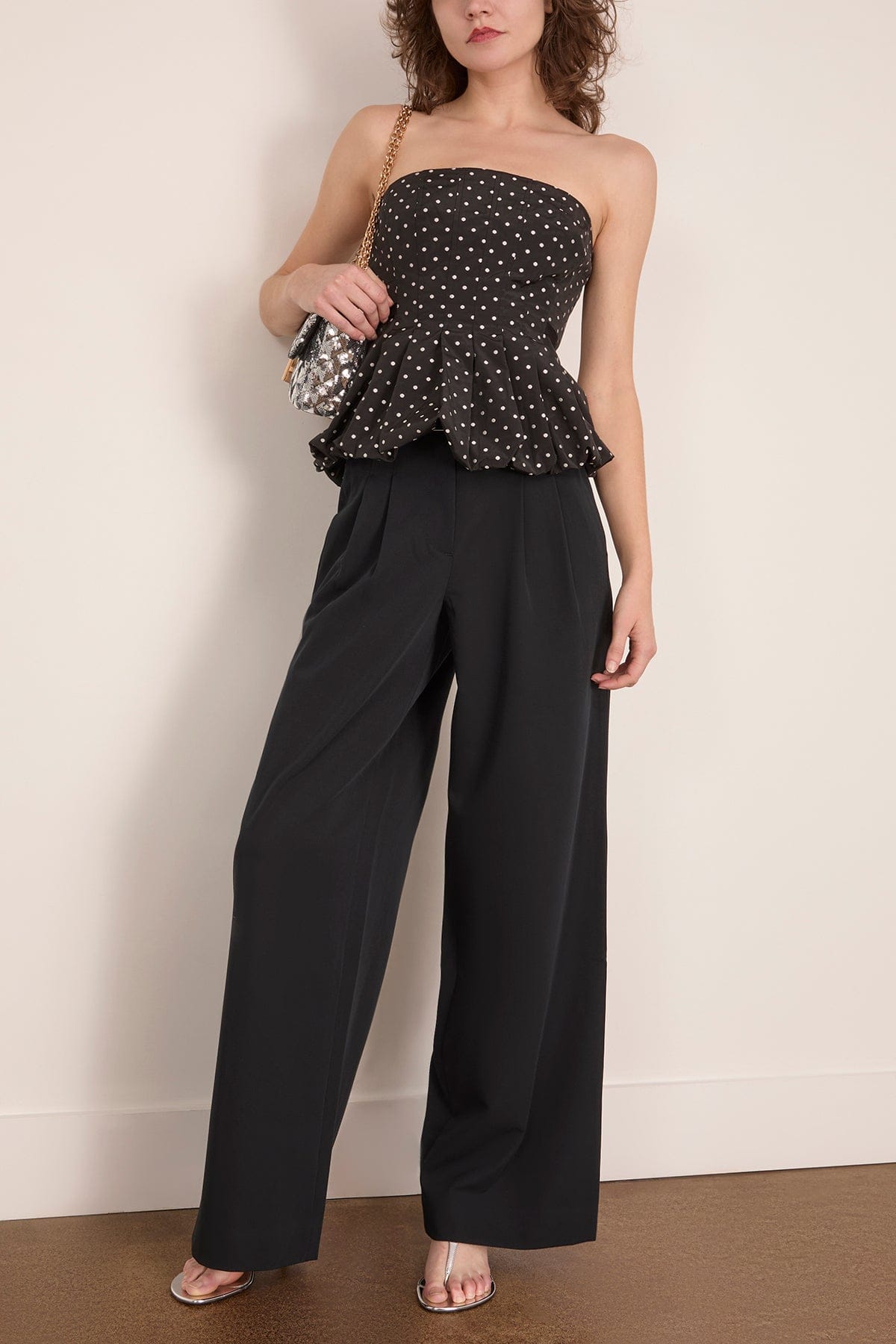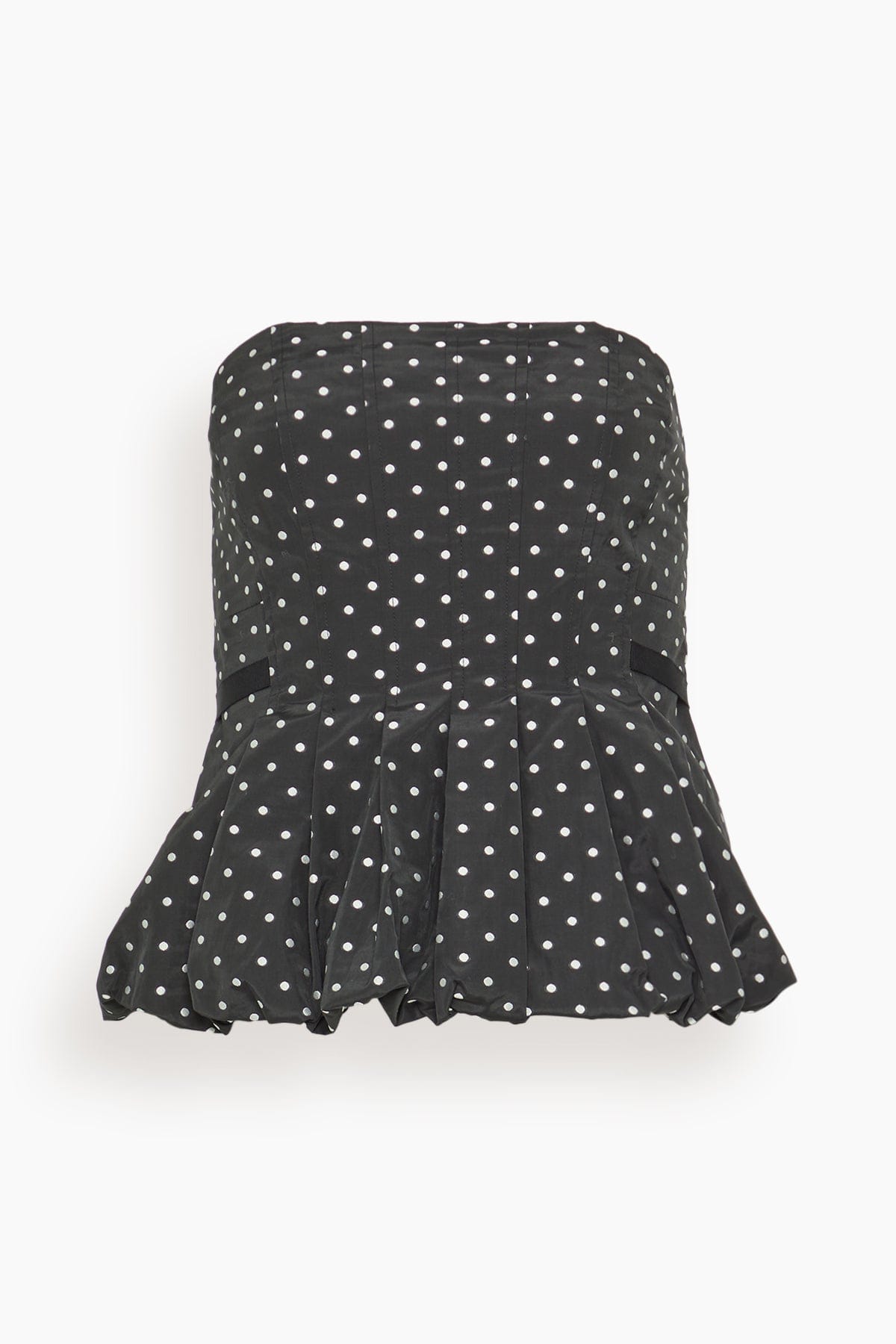 The Tanya Taylor Farah Top is perfect for an evening out. This strapless top is crafted in a playful polka dot print with a peplum hemline. Wear yours with trousers and heels.