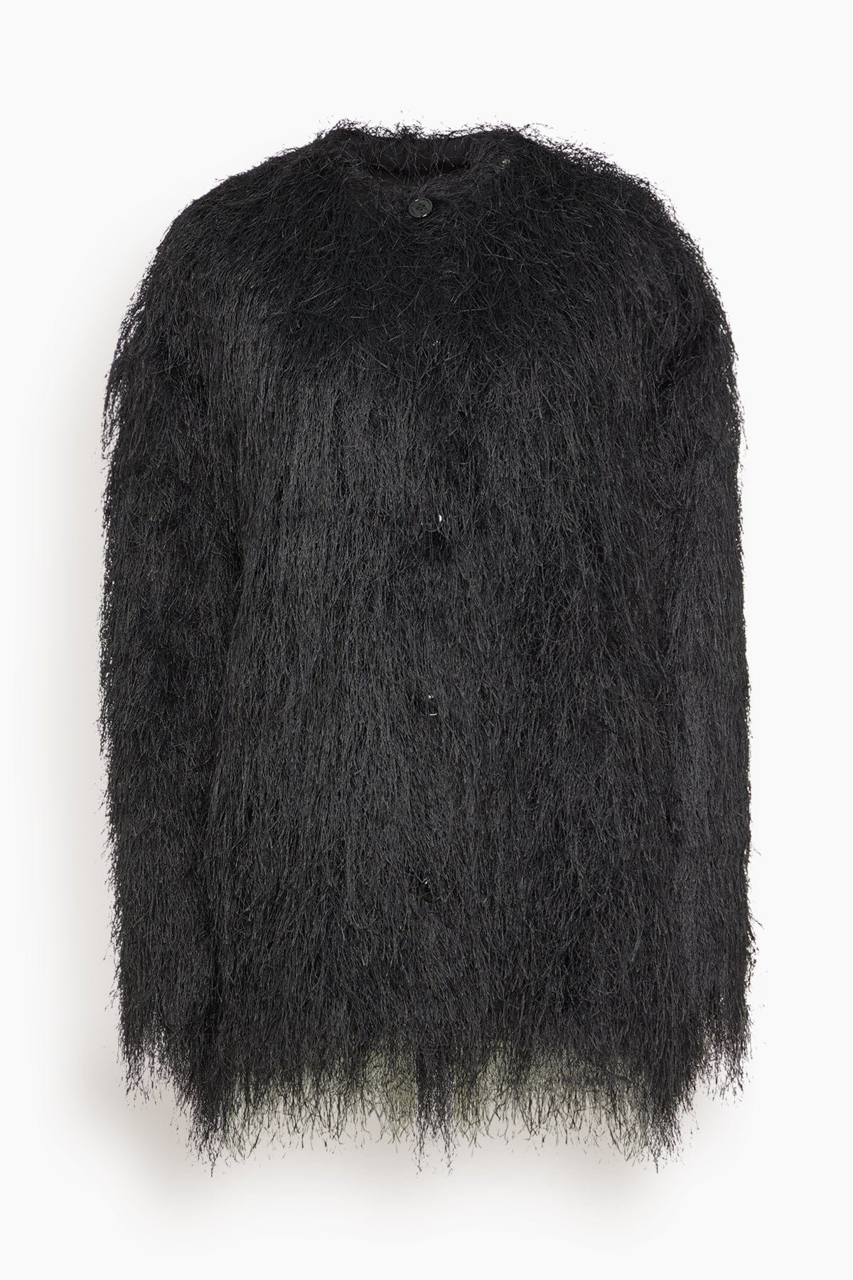 The Loulou de Saison Filipo Oval-Shaped Jacket will be a standout addition in your wardrobe. This jacket features allover fringe that mimics a fur coat with a cocoon silhouette. Wear yours over jeans and a sweater.