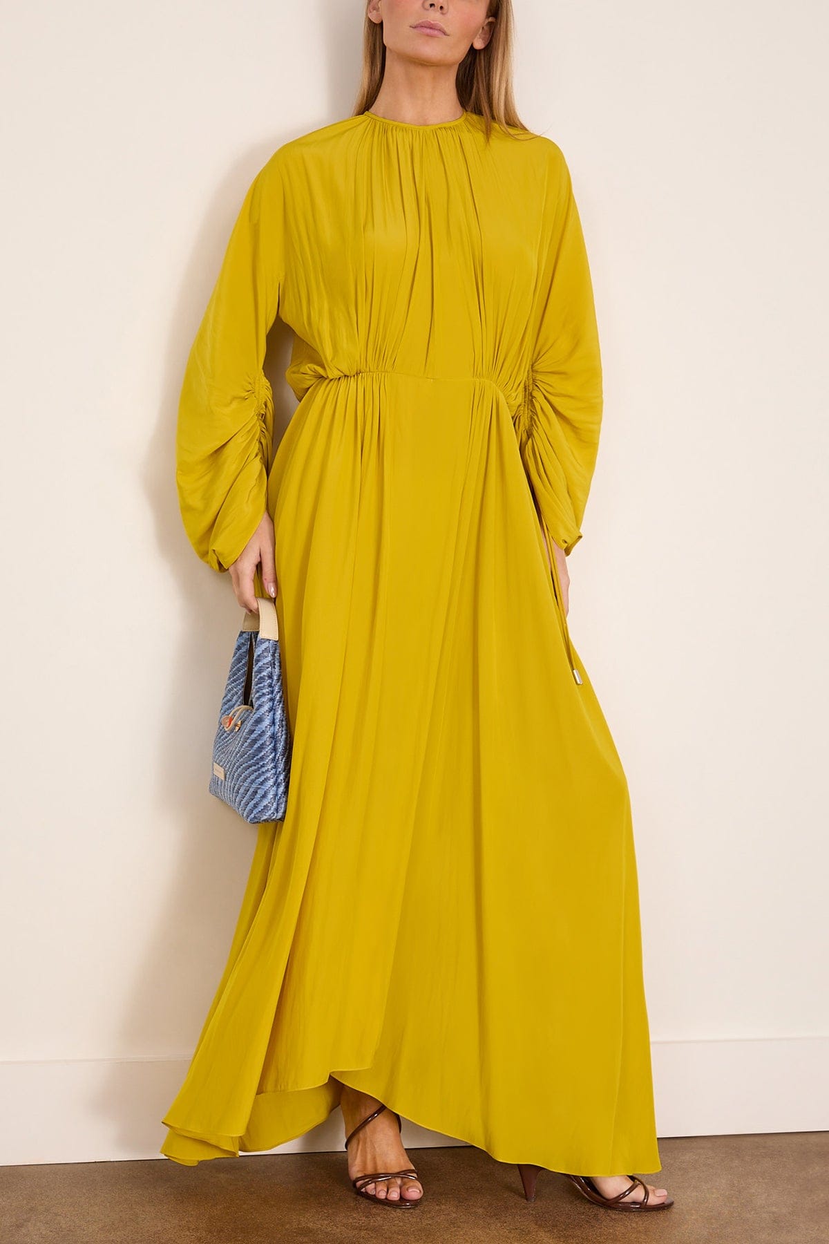 The Lanvin Fitted Waist Midi Dress is a beautiful piece from their Resort 26 Collection. This midi dress features a fitted waistband with gathering and a flowing silhouette. Wear yours with heels and a shoulder bag.