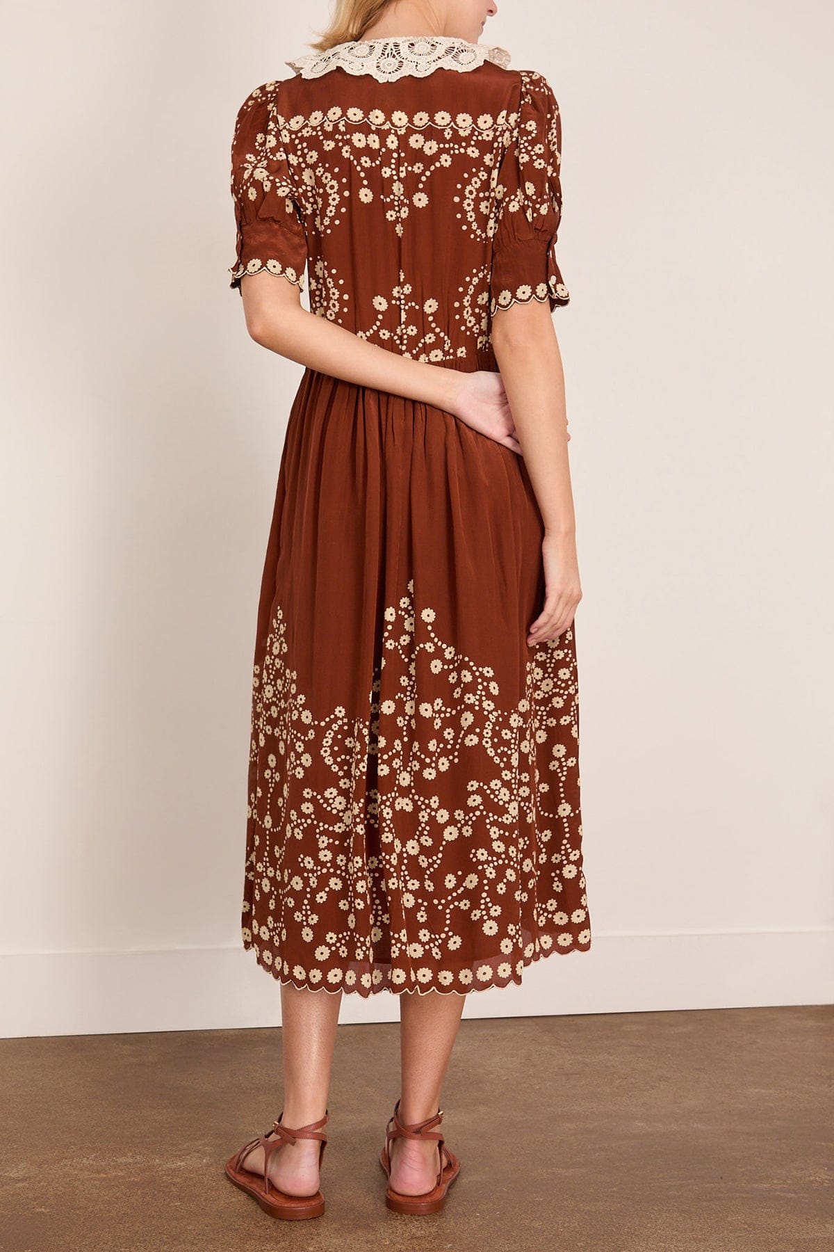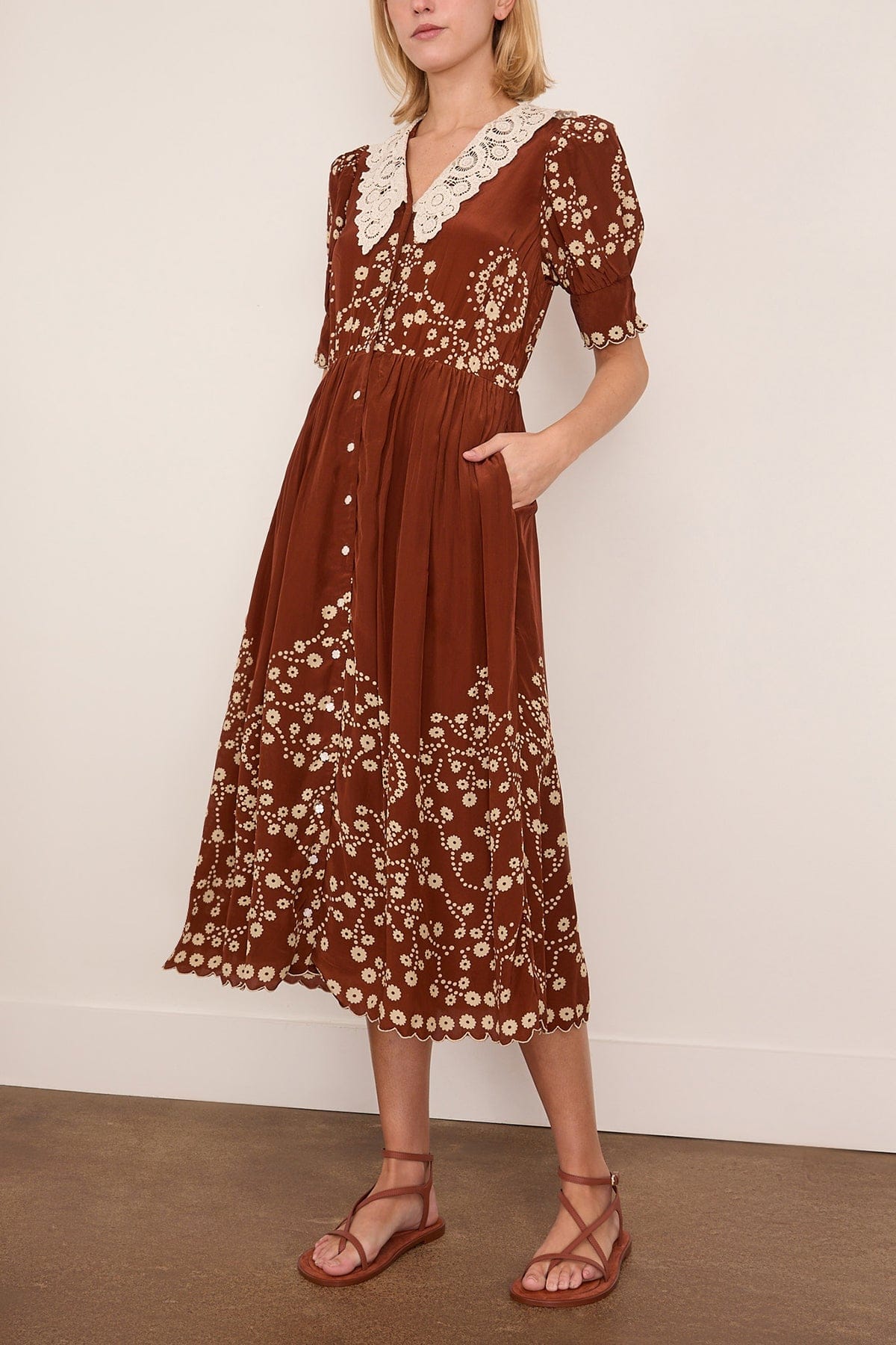 The SEA Frances Print Short Sleeve Midi Dress features the feminine details you love from this designer. This midi dress has an oversized lace collar with a playful floral print. Wear yours with flats and a shoulder bag.