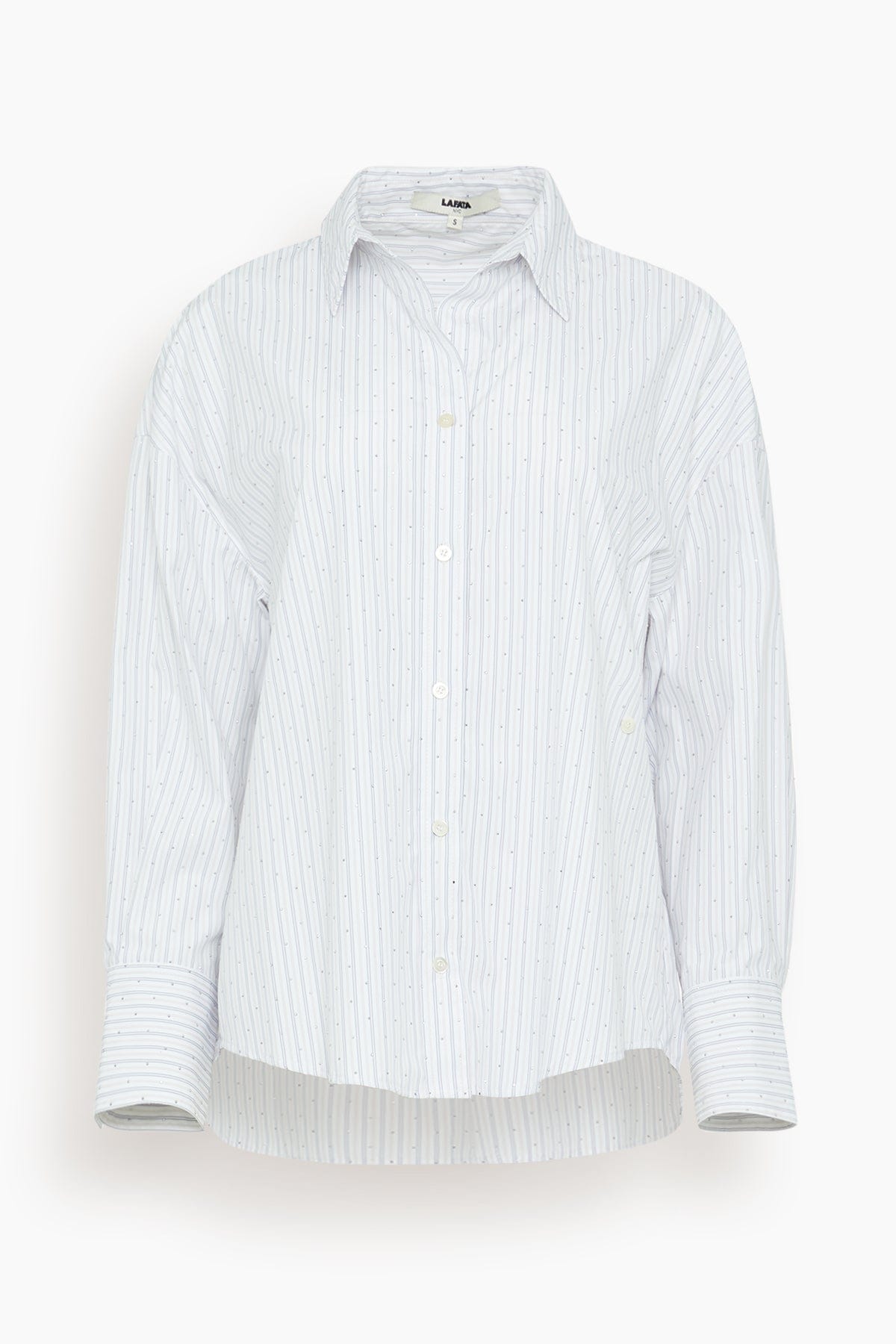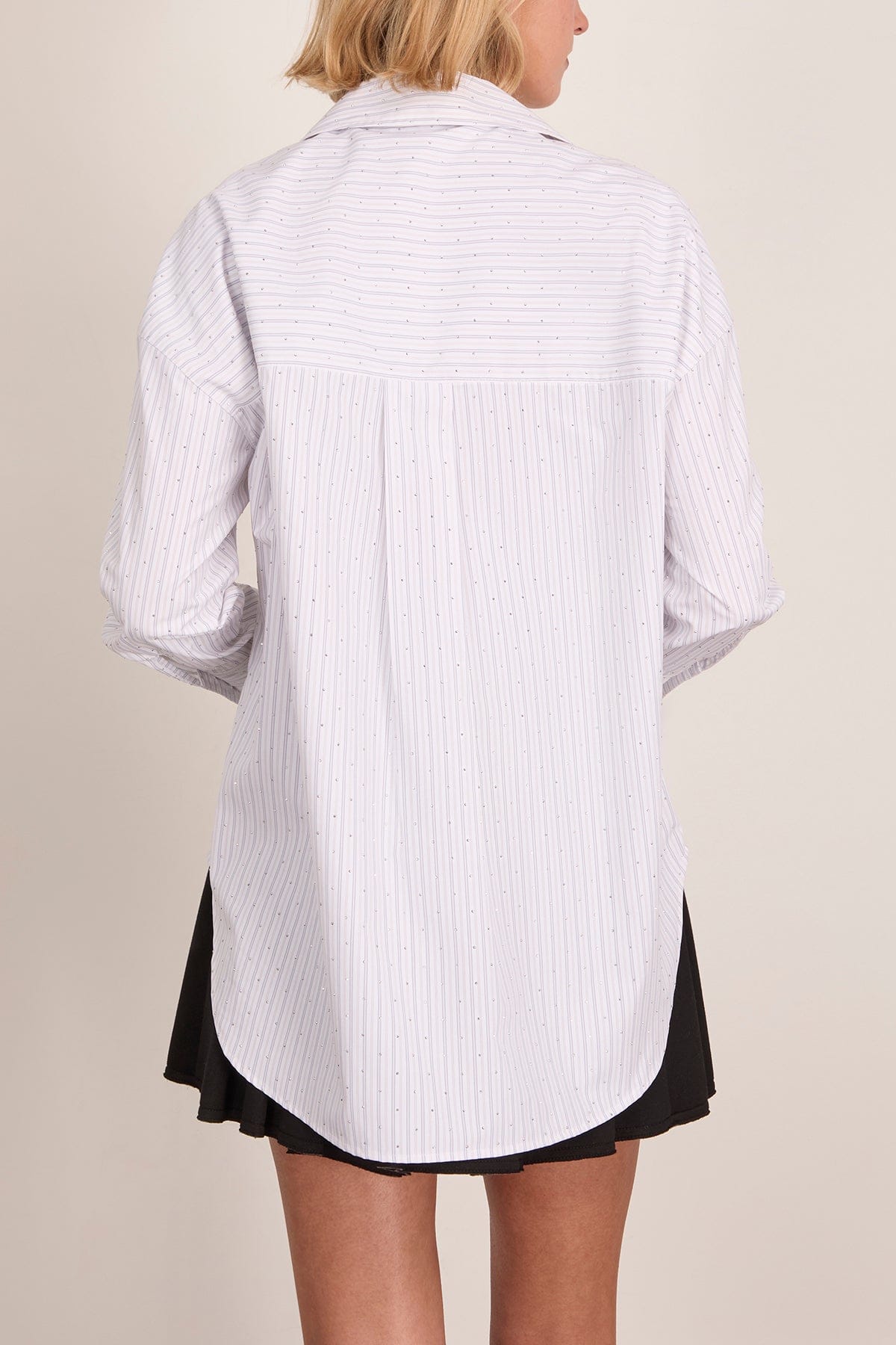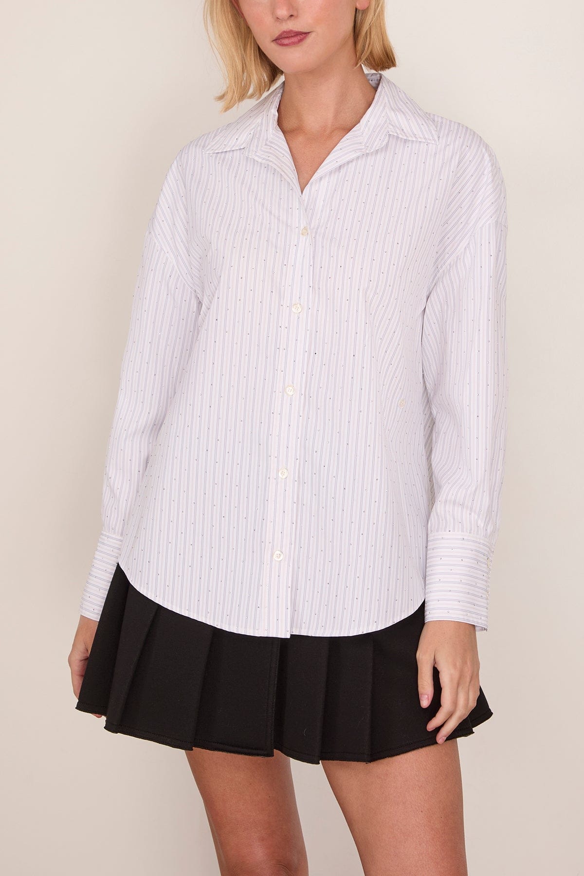 The Lafata Frankie Rhinestud Shirt is a twist on classic. This striped cotton poplin shirt features a relaxed fit with adorned in playful rhinestones. Wear yours with jeans and heels.