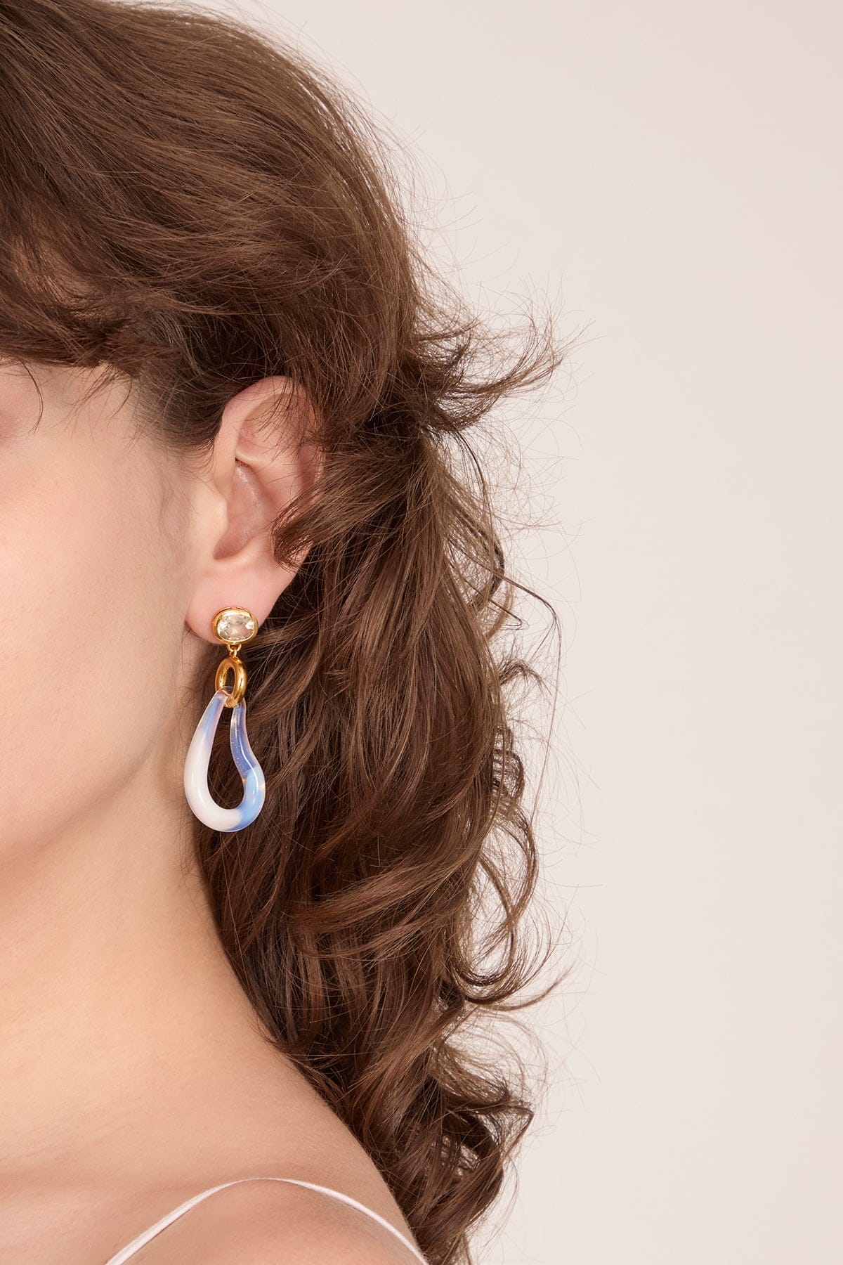 The Lizzie Fortunato Galina Earrings features the unique look you love from this designer. These earrings are crafted in gold-plated brass, with green amethyst tops and opalescent flame-worked glass teardrop hoops.
