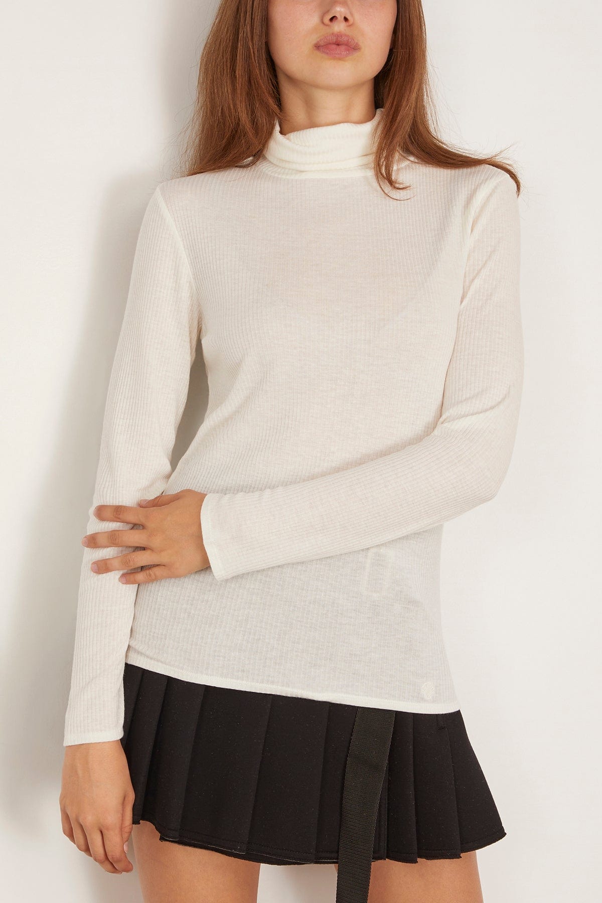The Loulou de Saison Gallinara Long Sleeve Top will go seamlessly in your wardrobe. This turtleneck features a slim silhouette in a ribbed wool blend. Wear yours with trousers and a blazer.