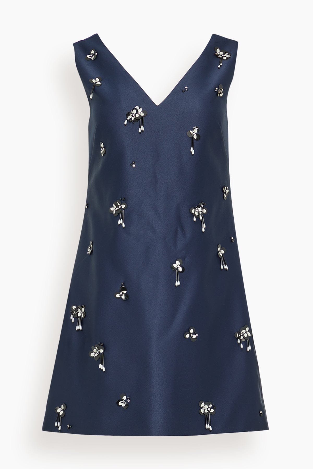 The Halston Dress is Tanya Taylor's go-to event mini dress this season, elevated with fresh detail and just the right amount of attitude. Designed in a luster satin and featuring a v-neck and a shift silhouette with all over crystal drop embellishment, Halston delivers a luxe, feminine feel with an effortless evening shine.