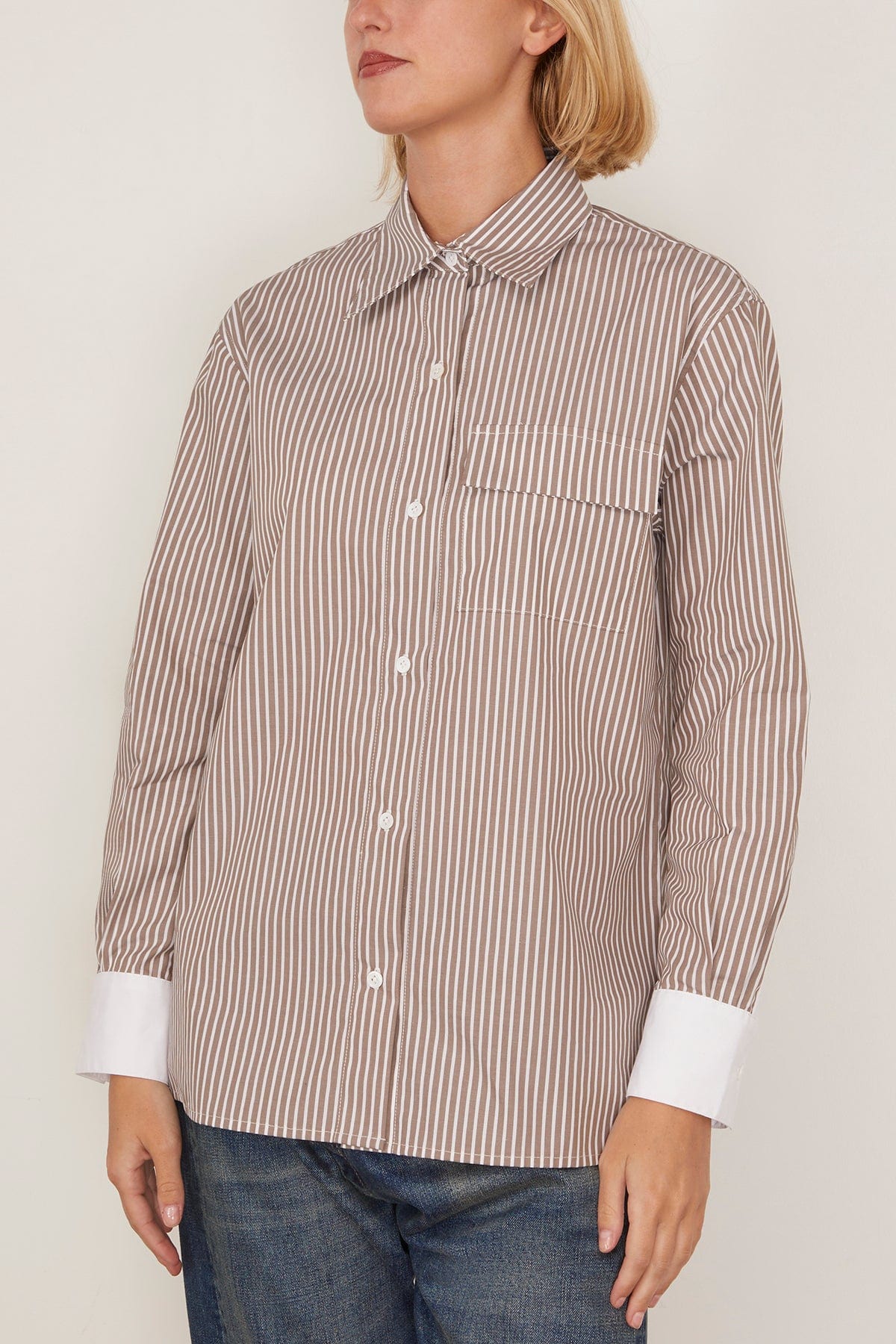 The WE-AR4 Haze Shirt takes it's inspiration from the 70's. This button down shirt has a relaxed, boxy silhouette with contrasting cuffs in upcycled cotton. Wear yours with jeans and loafers.