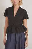 The Dries Van Noten Helians T-Shirt is a classic with a twist. This t-shirt features a draped, crossover front with a subtle peplum hemline. Wear yours with jeans and sandals.