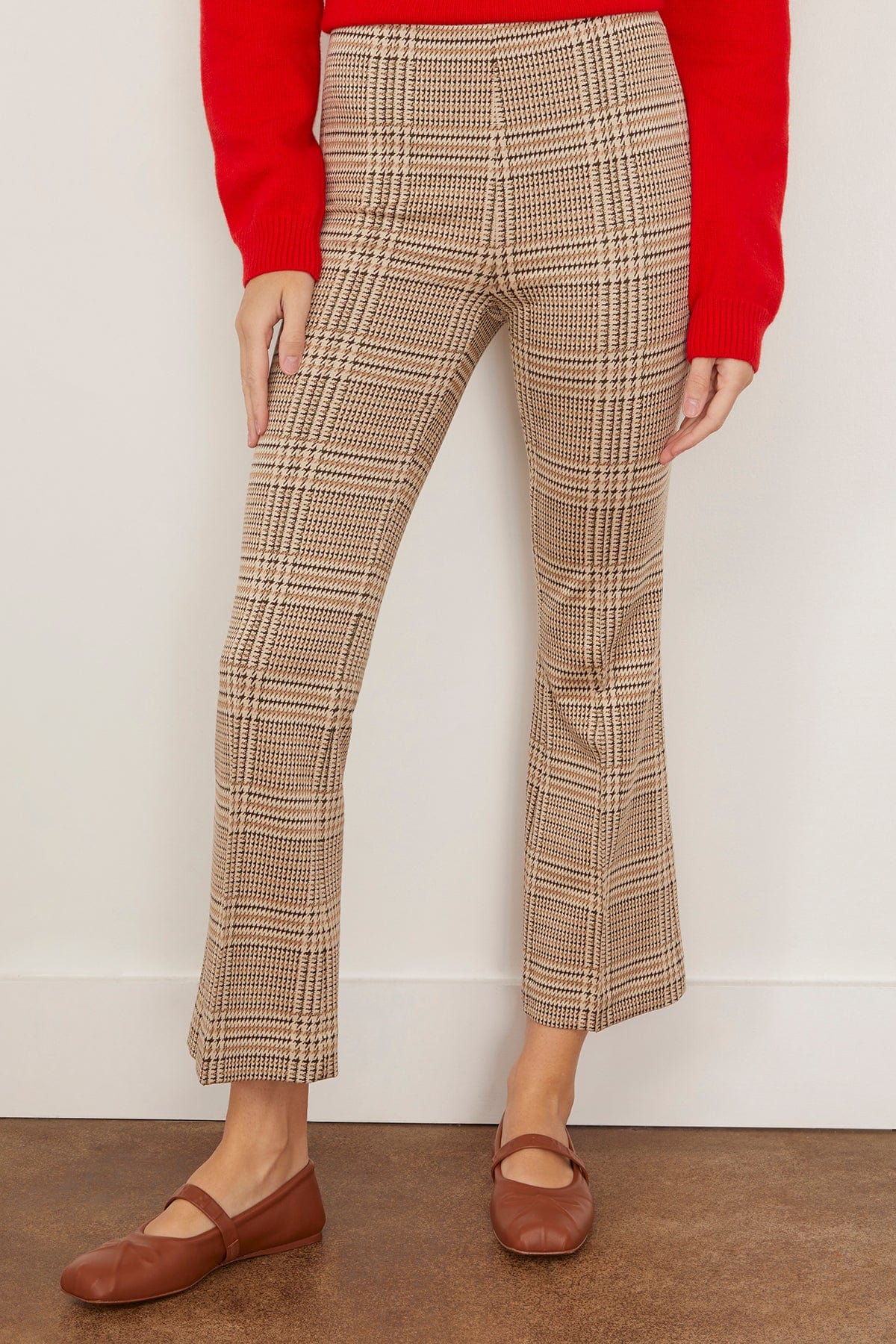 The Rag and Bone Irina Ponte Kick Flare Pants are a must-have piece form their Fall 25 Collection. This pants feature a flatter cropped kick flare leg in a classic stretch a classic Glen check for comfort and style. Wear yours with the matching top and loafers.
