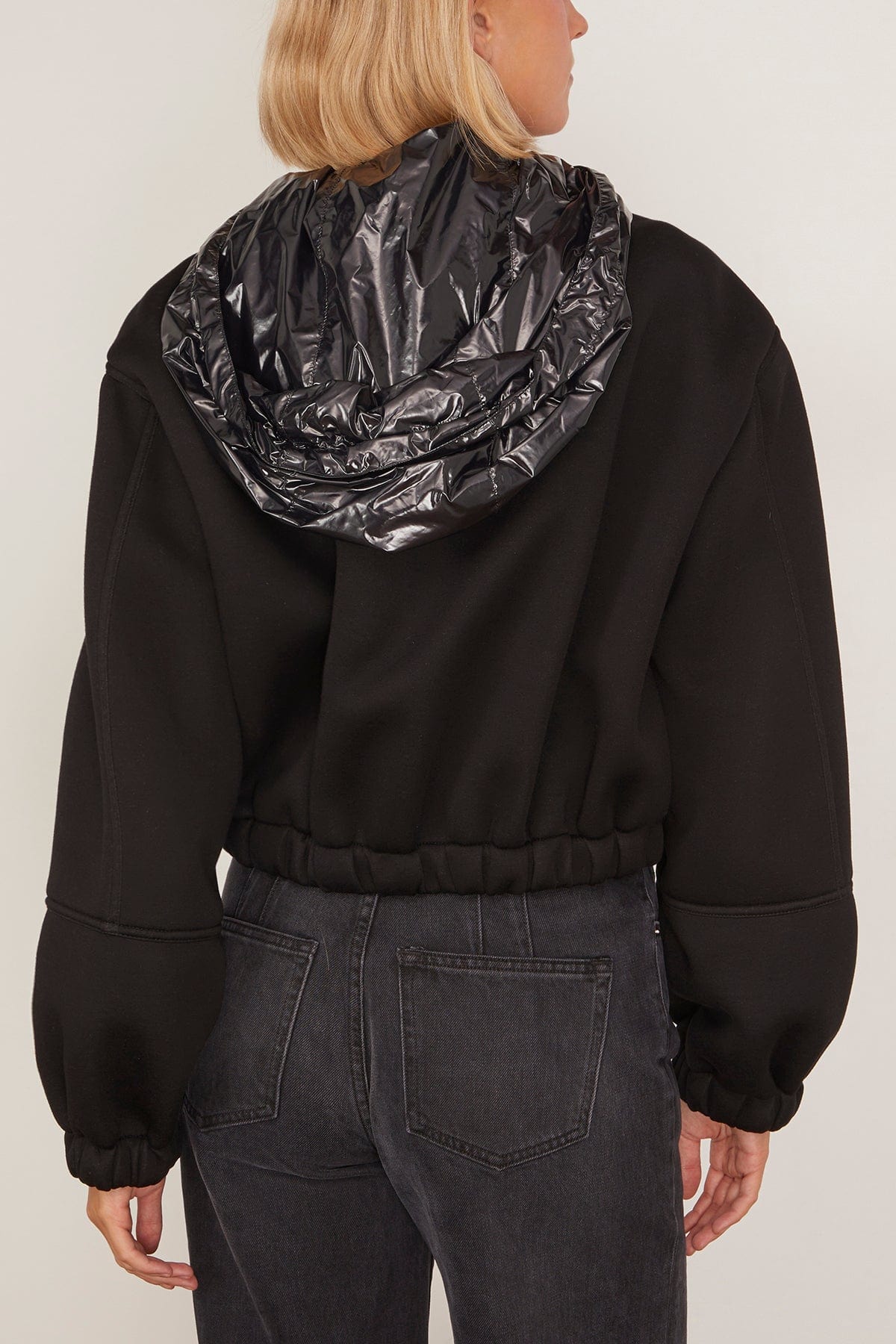 The Plan C Jacket in Black is a must-have piece from their Fall 25 Collection. This bomber jacket features a modern, cropped length with a detachable shiny hood and patch pockets. Wear yours over a button down with jeans.