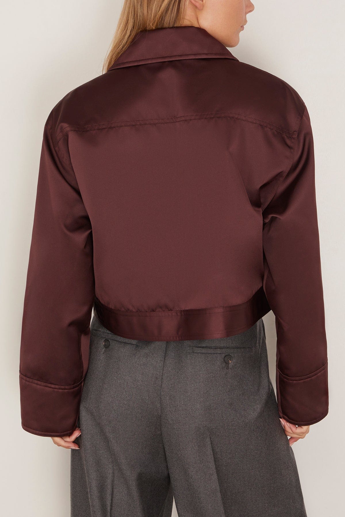 The Plan C Jacket in Dark Burgundy i a must-have piece from their Fall 25 Collection. You'll love the satin material of this duchesse jacket with front flap pockets.