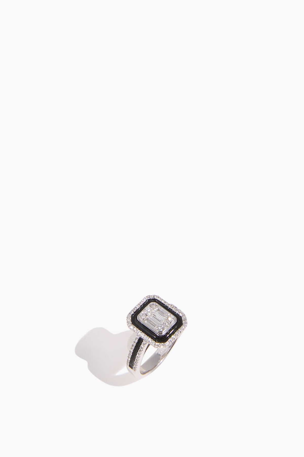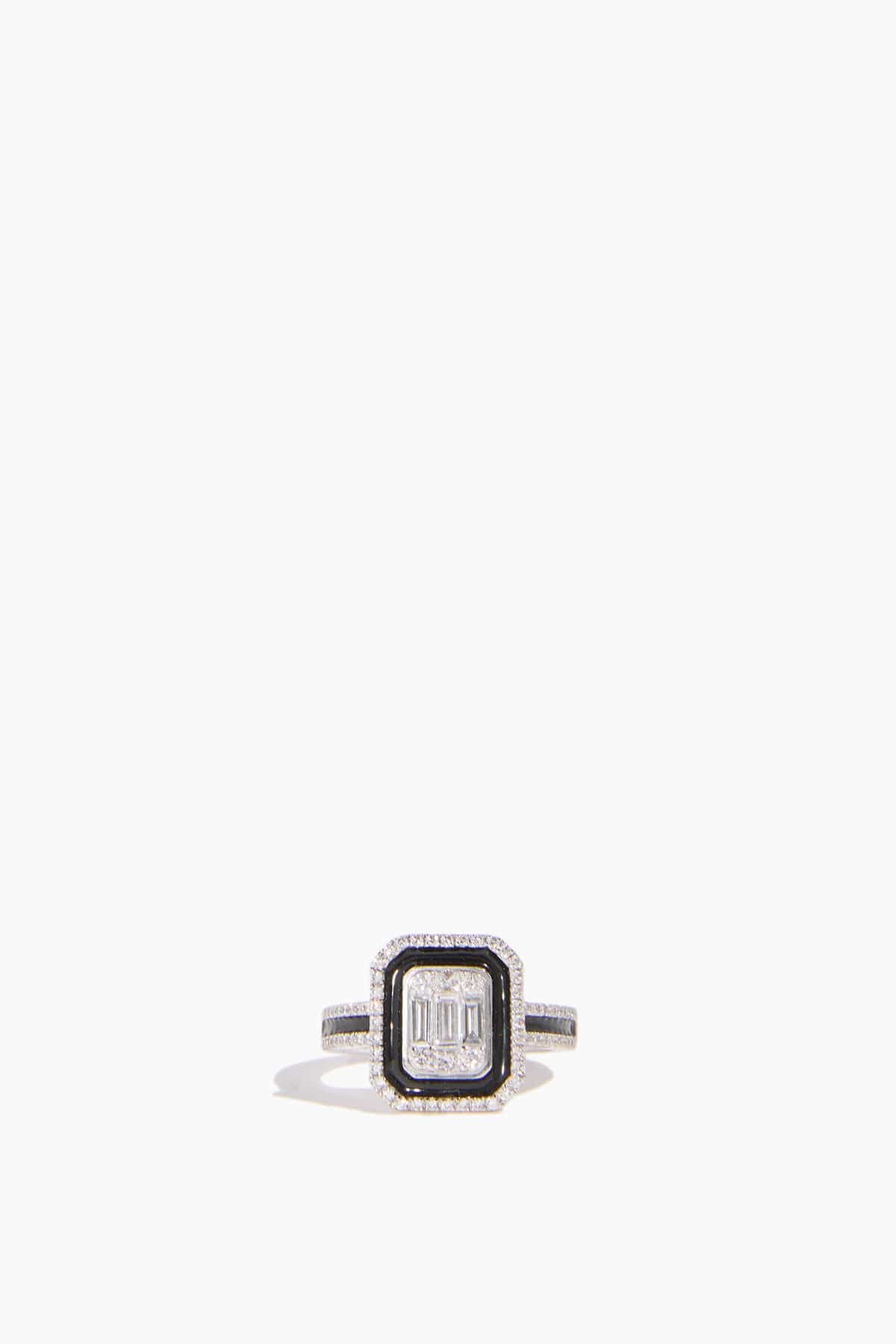 The Stoned Fine Jewelry Jubilee Emerald Cut Illusion Ring is a beautiful addition to your jewelry collection. This ring features emerald cut diamonds set in black onyx and white gold.