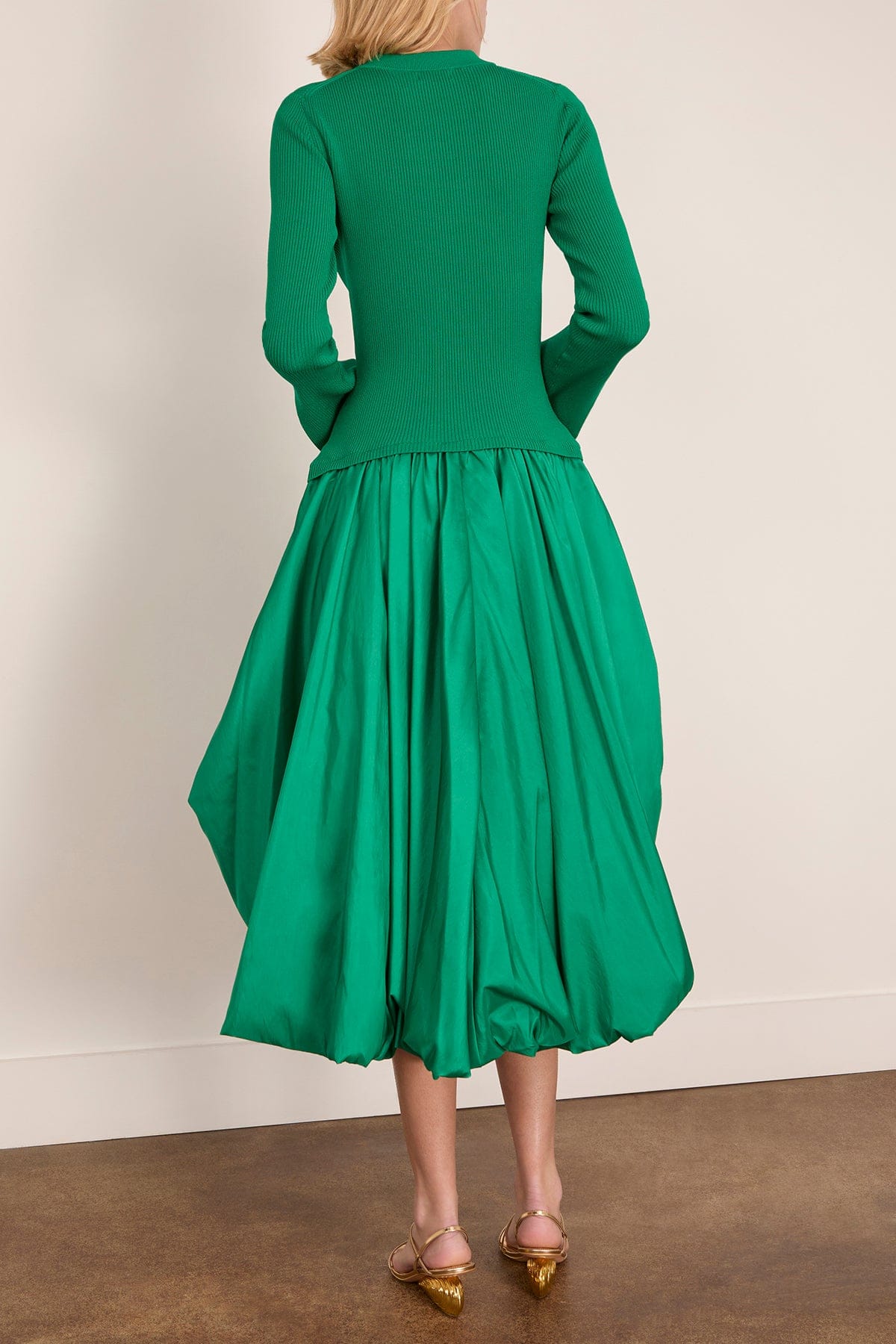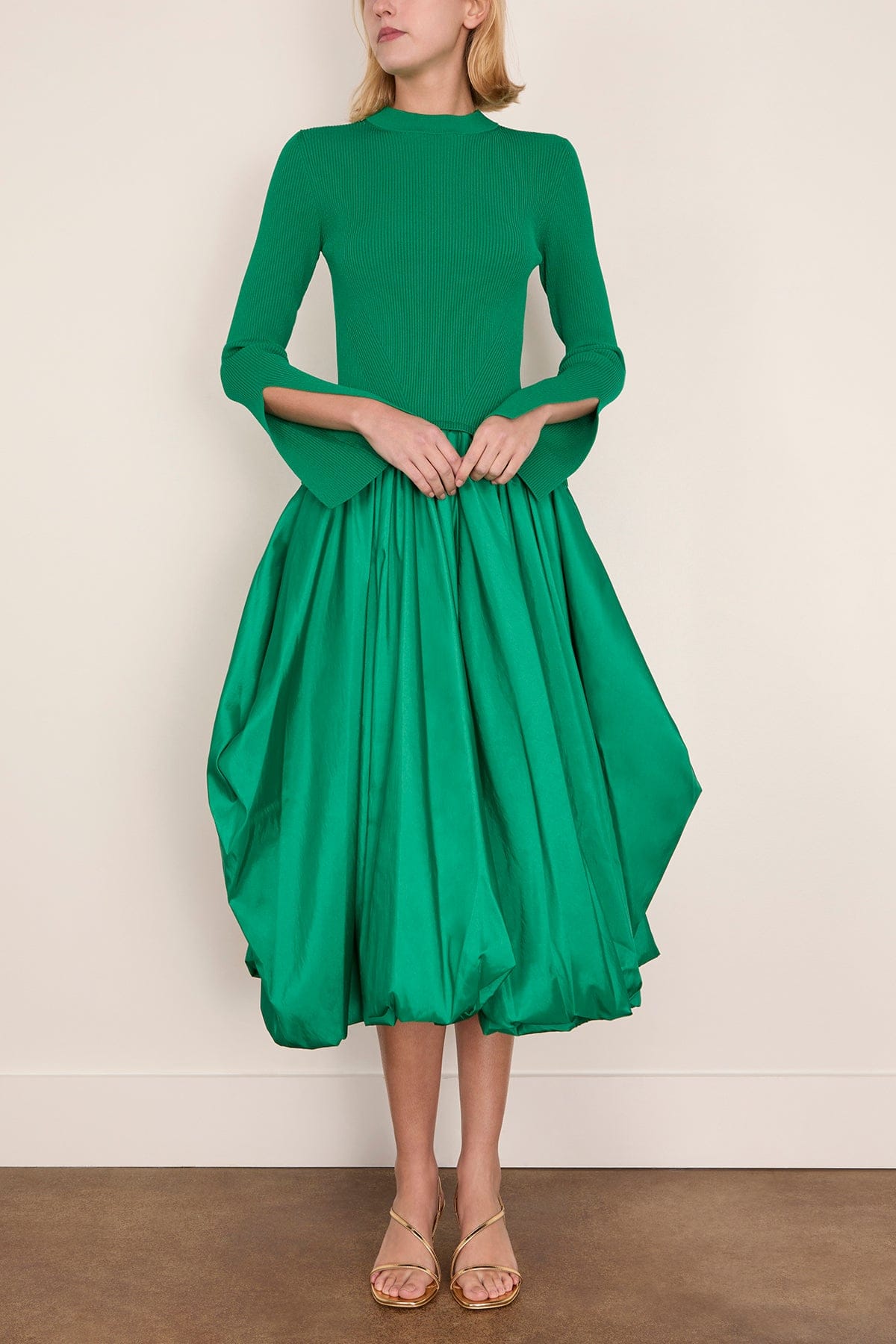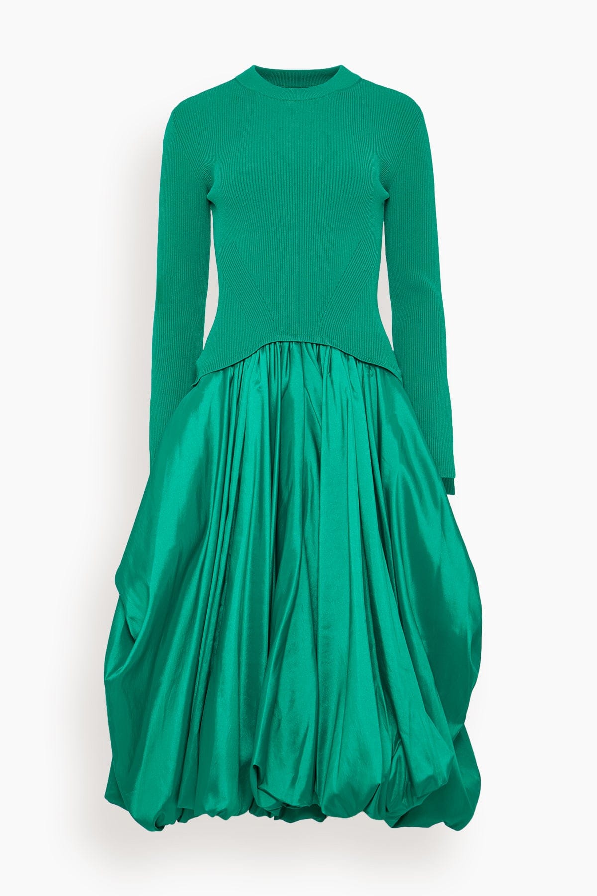 The Simkhai Kenlie Long Sleeve Mock Neck Midi Dress is perfect for an evening out. You'll love the fitted knit bodice of this midi dress with the contrasting taffeta bubble skirt. Wear yours with heels and a clutch.
