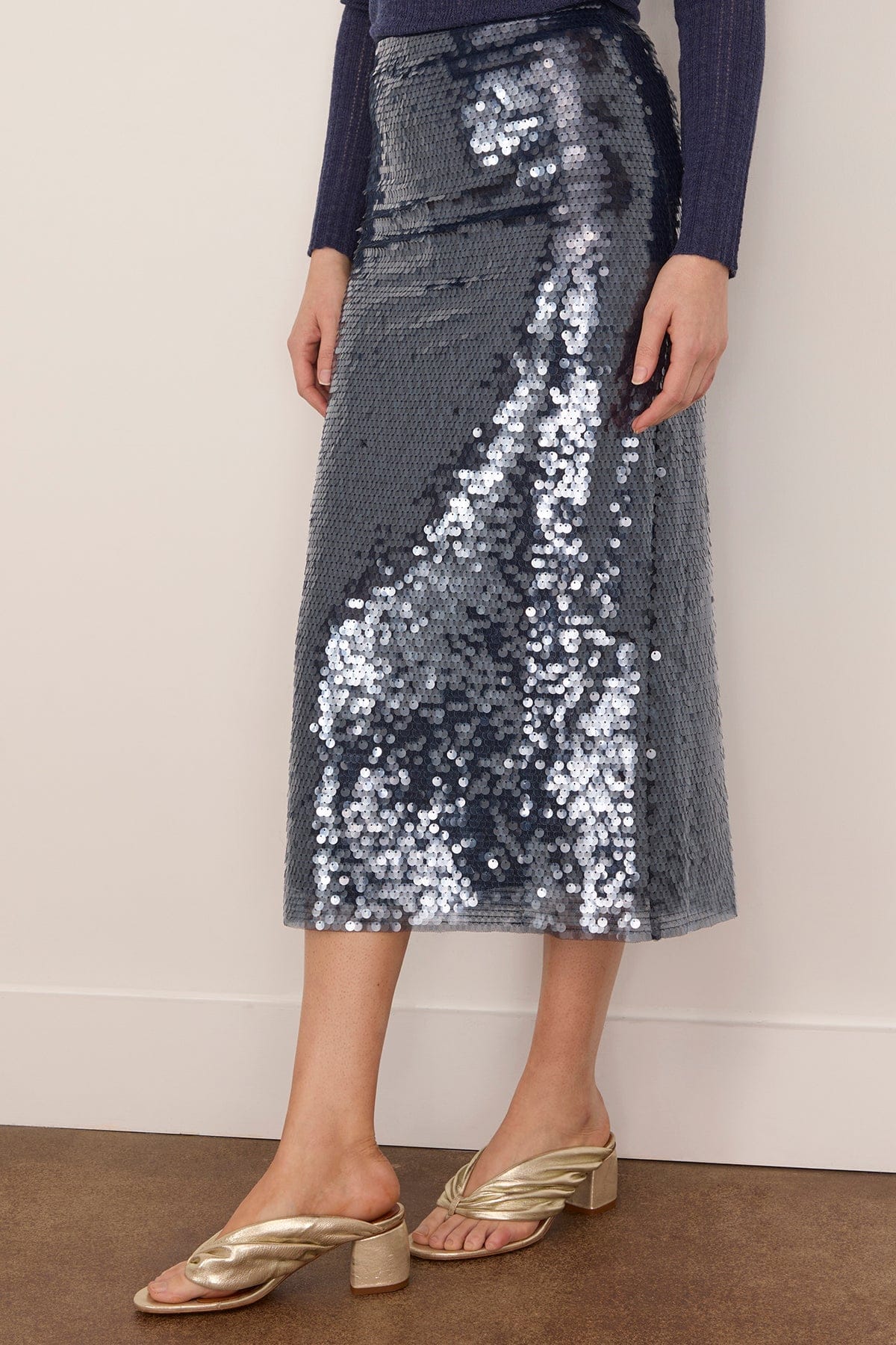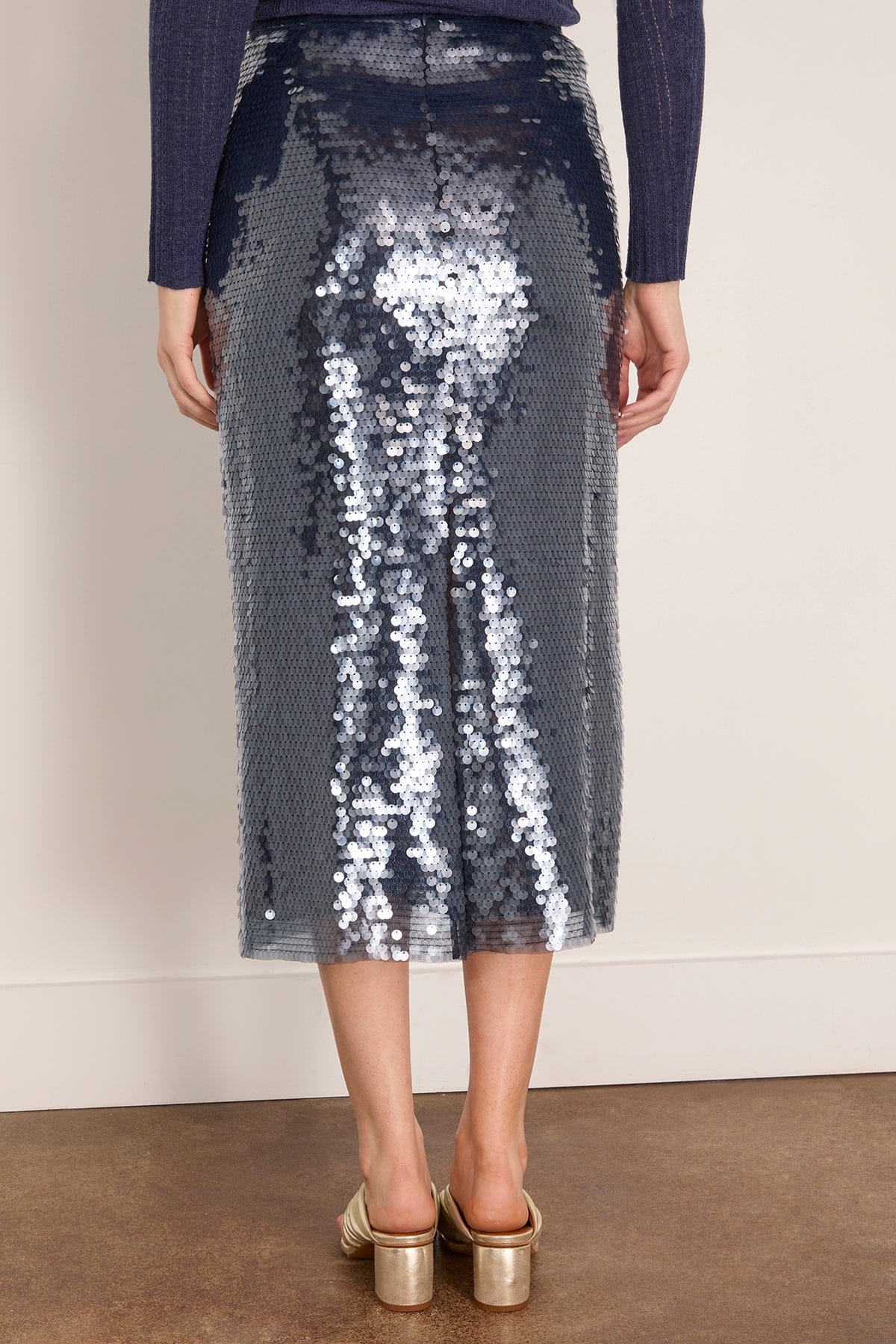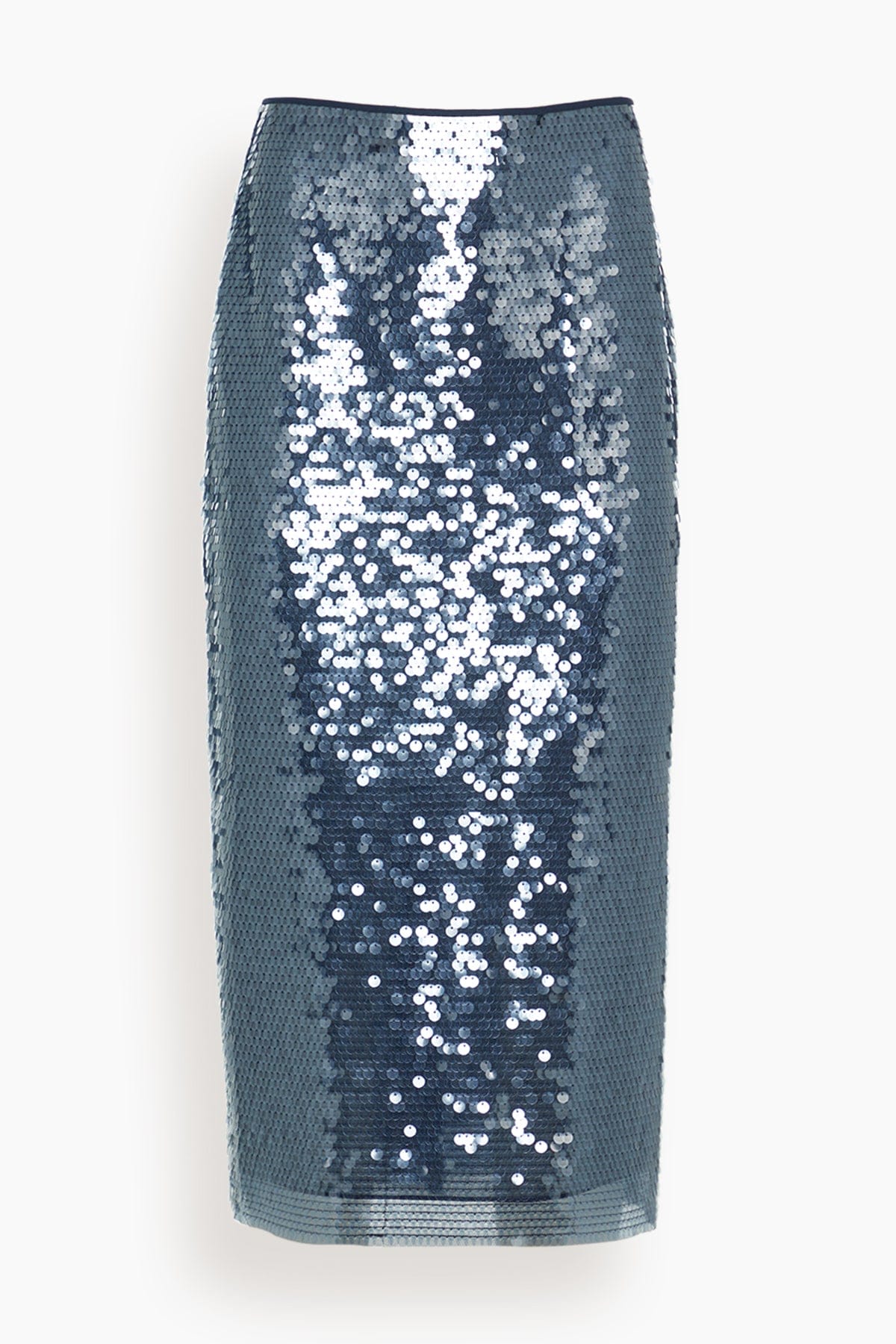 The Tanya Taylor Kiah Skirt will have you ready for the holidays. This pencil skirt features allover sequins with a back slit for ease. Wear yours with a blouse and heels.
