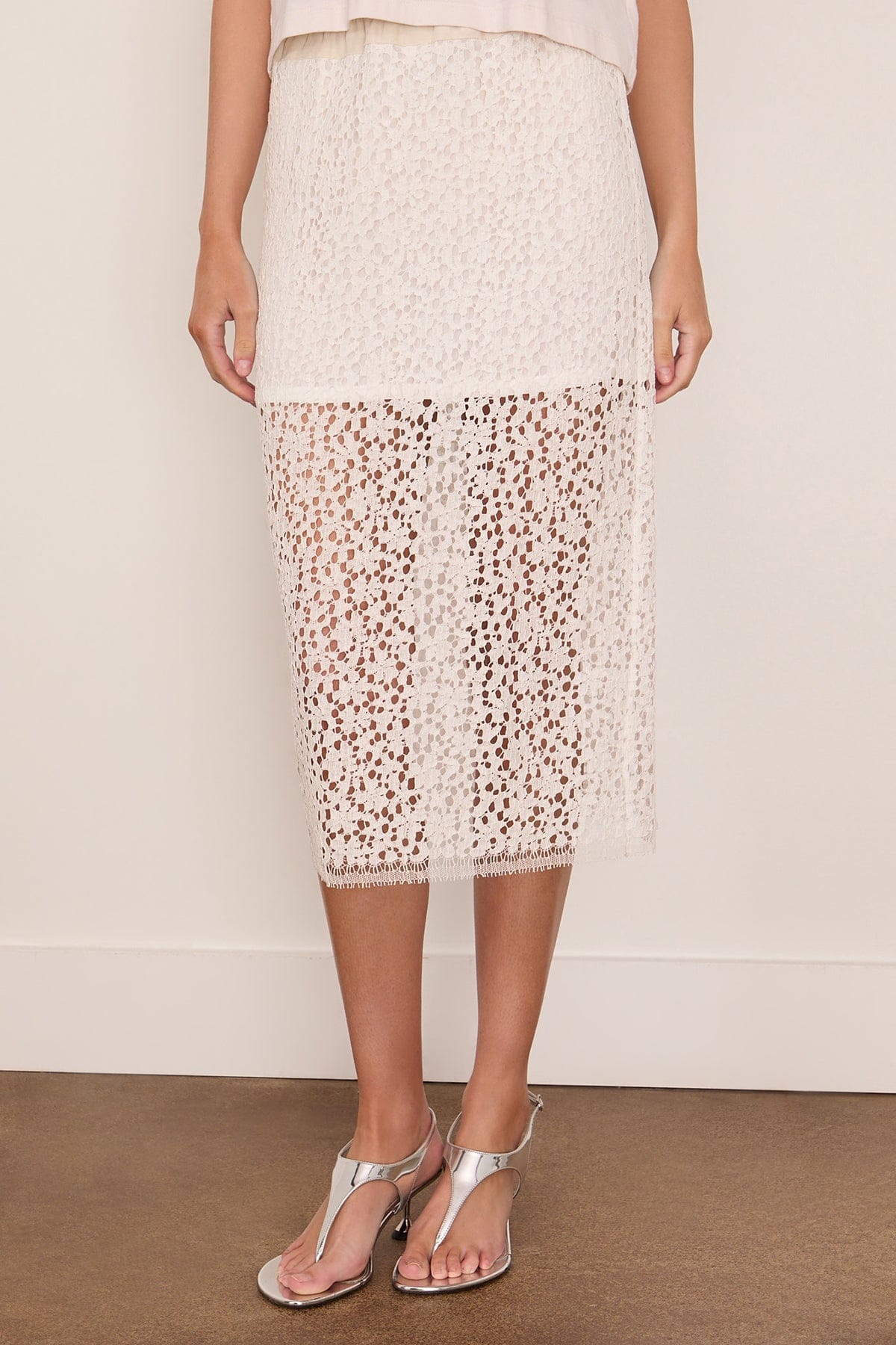 The Maria McManus Lace Ruched Skirt is a must-have addition to your spring wardrobe. This skirt is crafted in beautiful Dentelle de Calais-Caudry® white lace with a short underlay. Wear yours with a button down and flats.