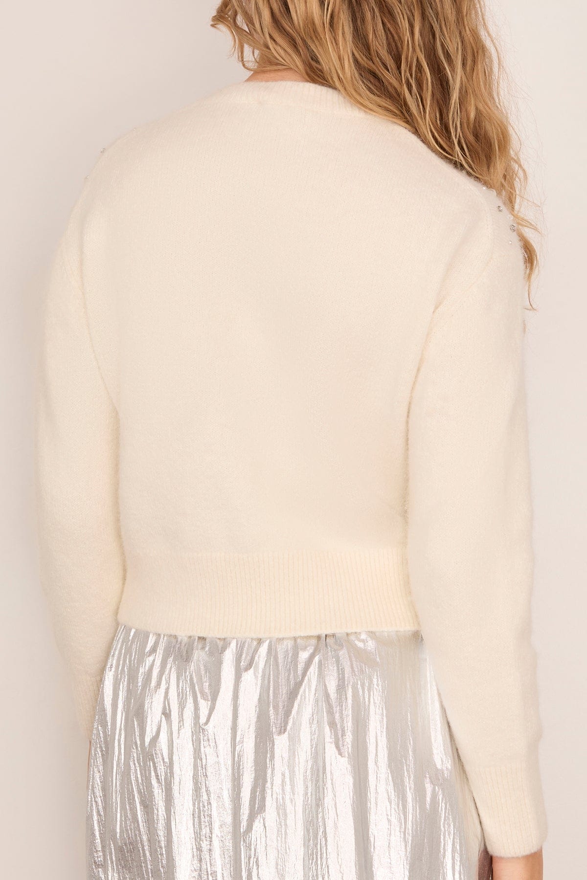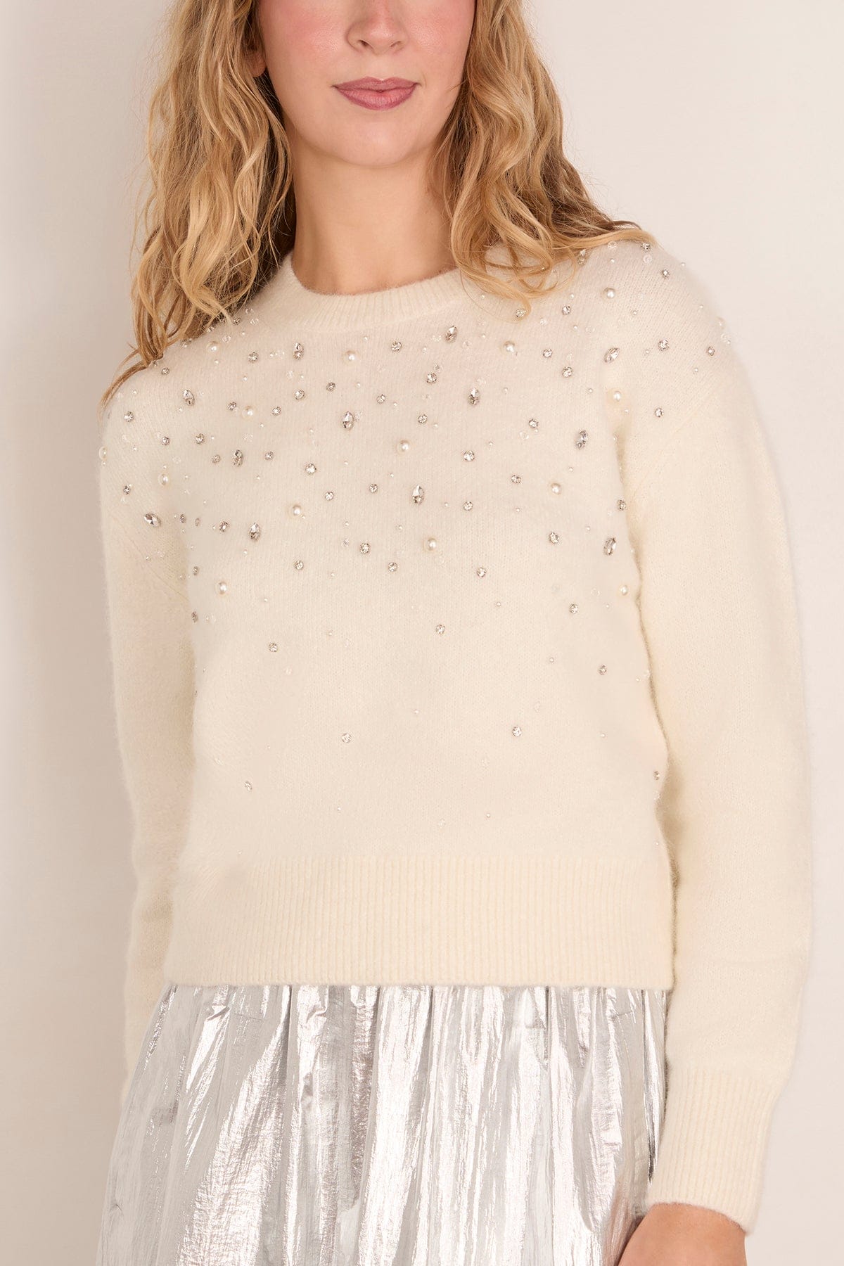 The Tanya Taylor Lexia Embellished Sweater is perfect for the holidays. This sweater features beautiful crystal and stone embellishments with a relaxed fit. Wear yours with a skirt and boots.