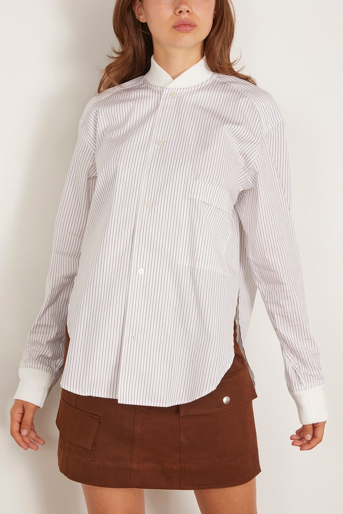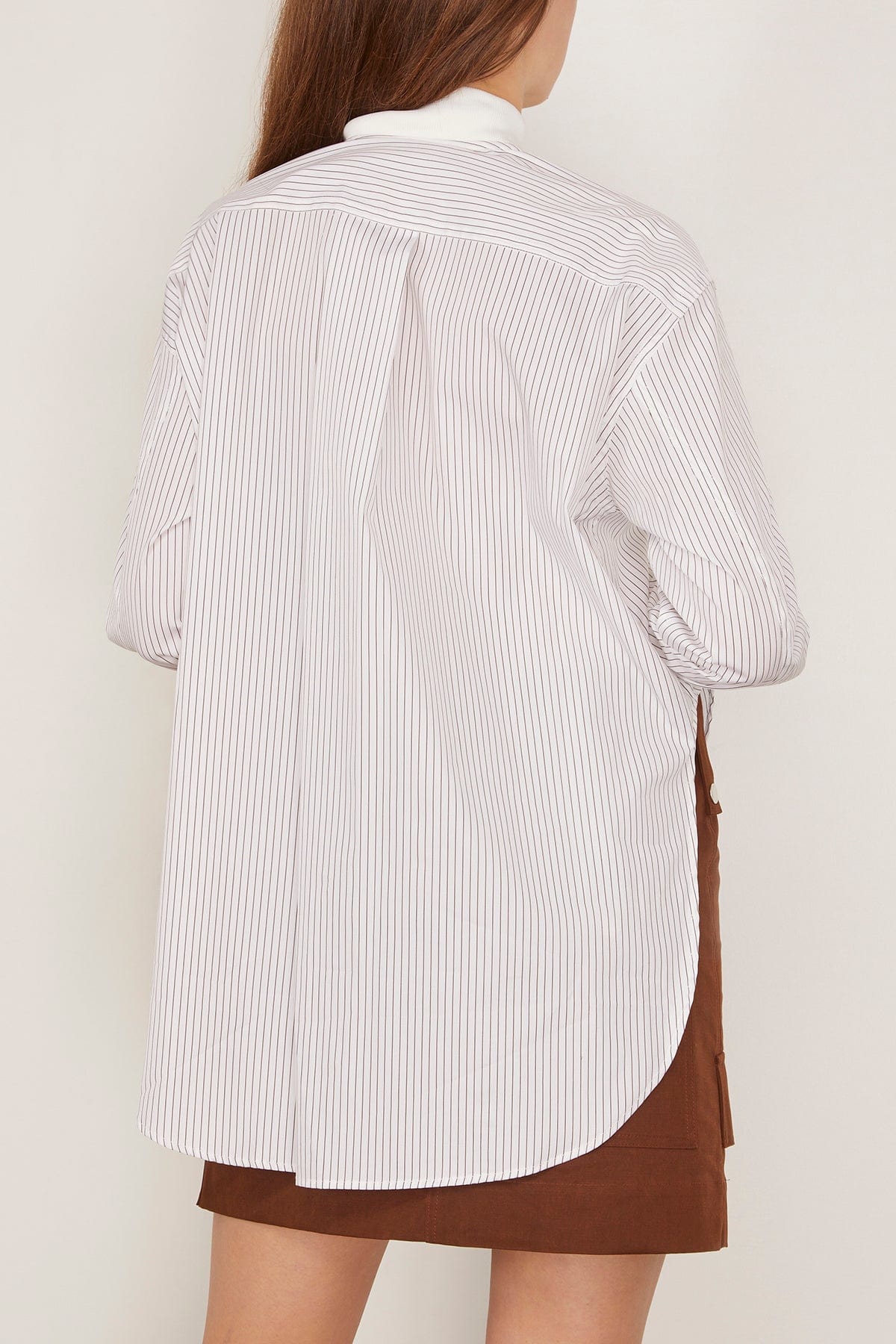 The Plan C Long Sleeve Shirt in Brown/White Stripe will be in your wardrobe for years to come. This button down shirt is crafted in a classic striped cotton with a draped back. Wear yours with jeans and loafers.