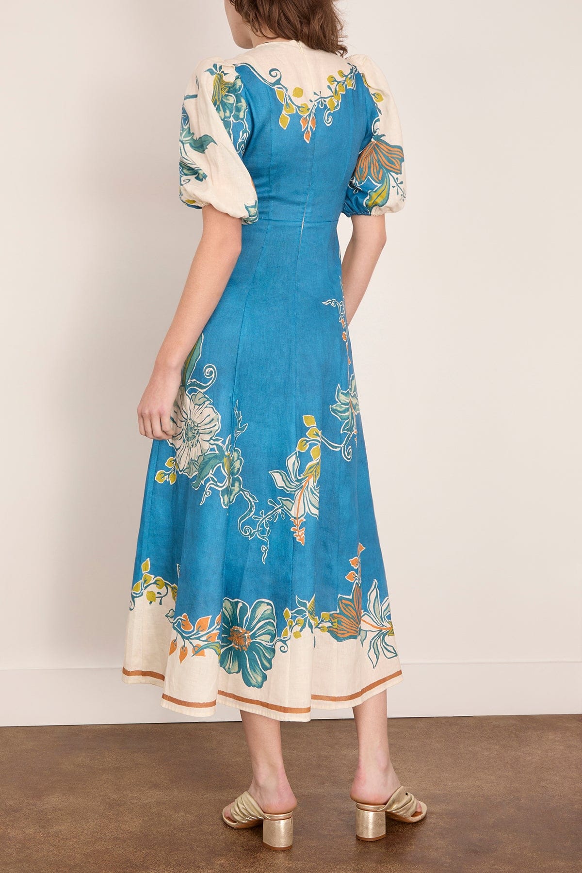 The Alemsia Luda Midi Dress in Blue is a short sleeve midi dress with puffed sleeves.