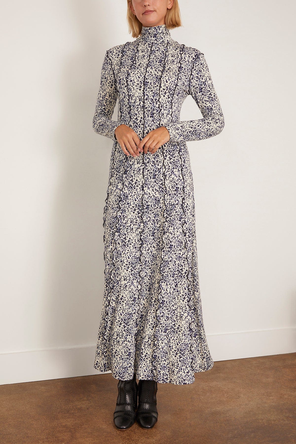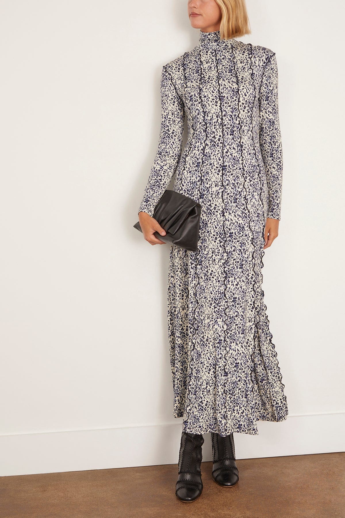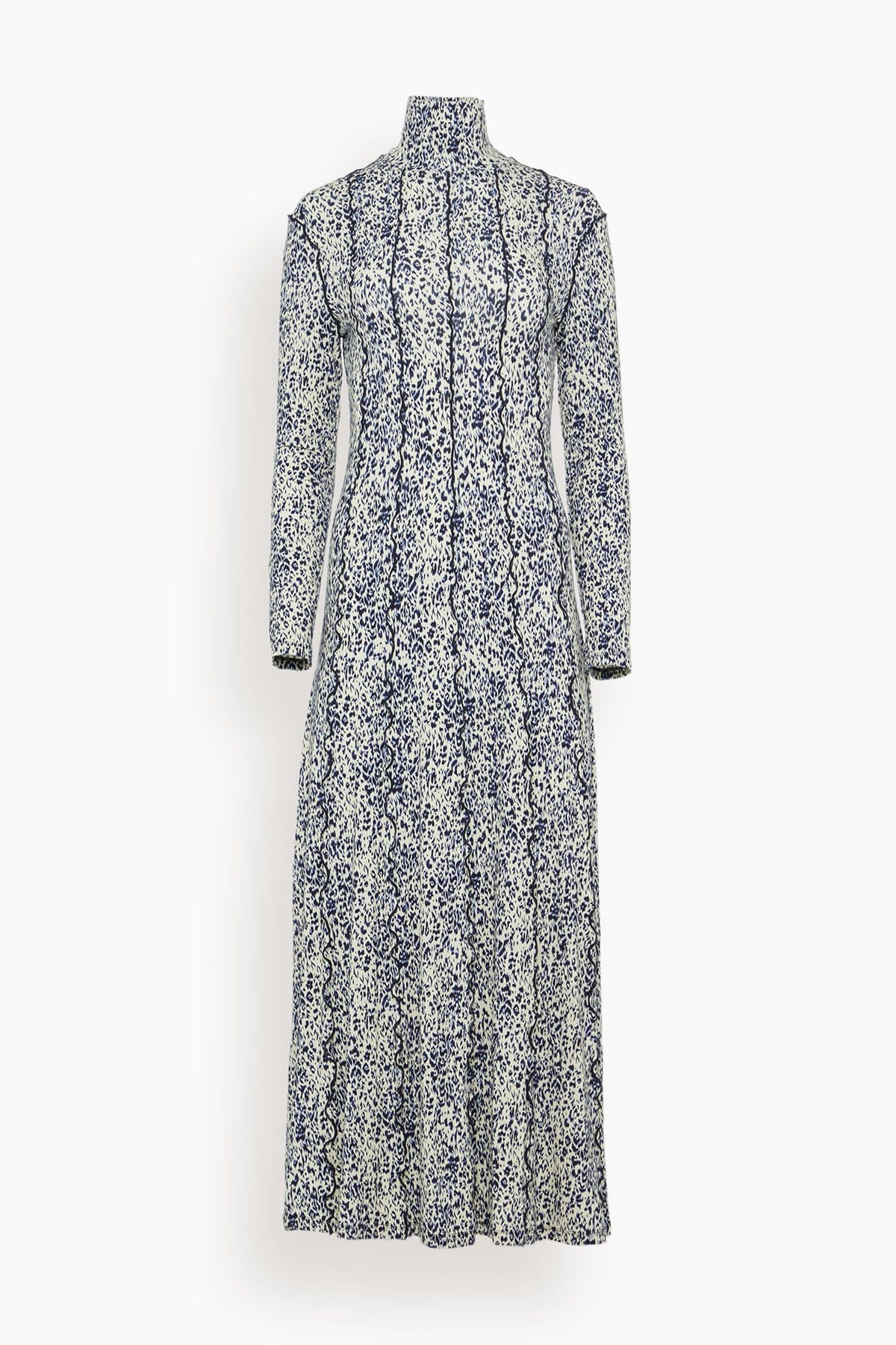 The Proenza Schouler White Label Mabel Dress in Marble Jersey is crafted in a soft jersey fabrication to a long-sleeve turtleneck silhouette with a full sweep.
