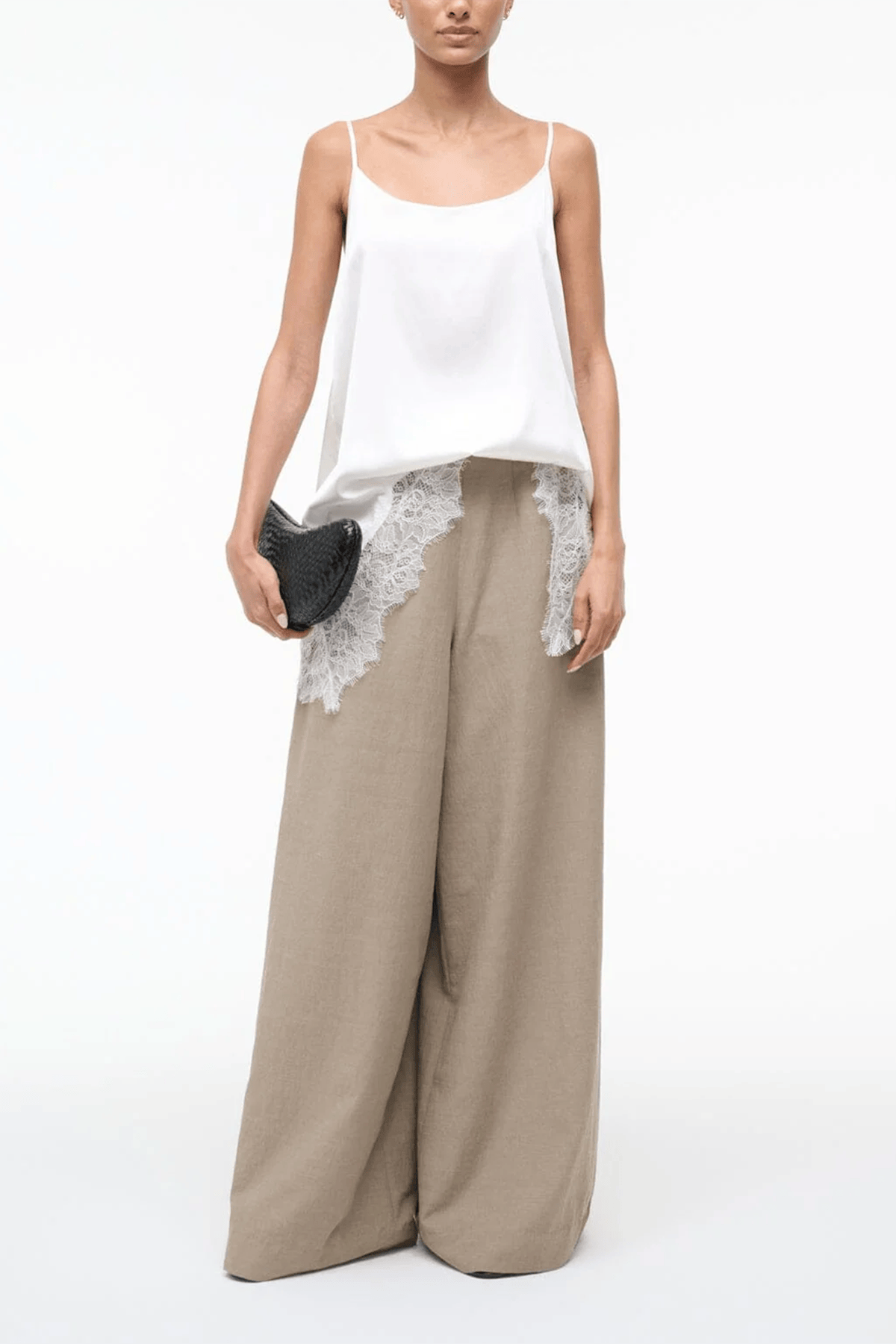 The Staud Magpie Pant will go with just about everything in your wardrobe. These pants feature a wide leg with a classic high rise in a textured fabric. Wear yours with a tank and flats.