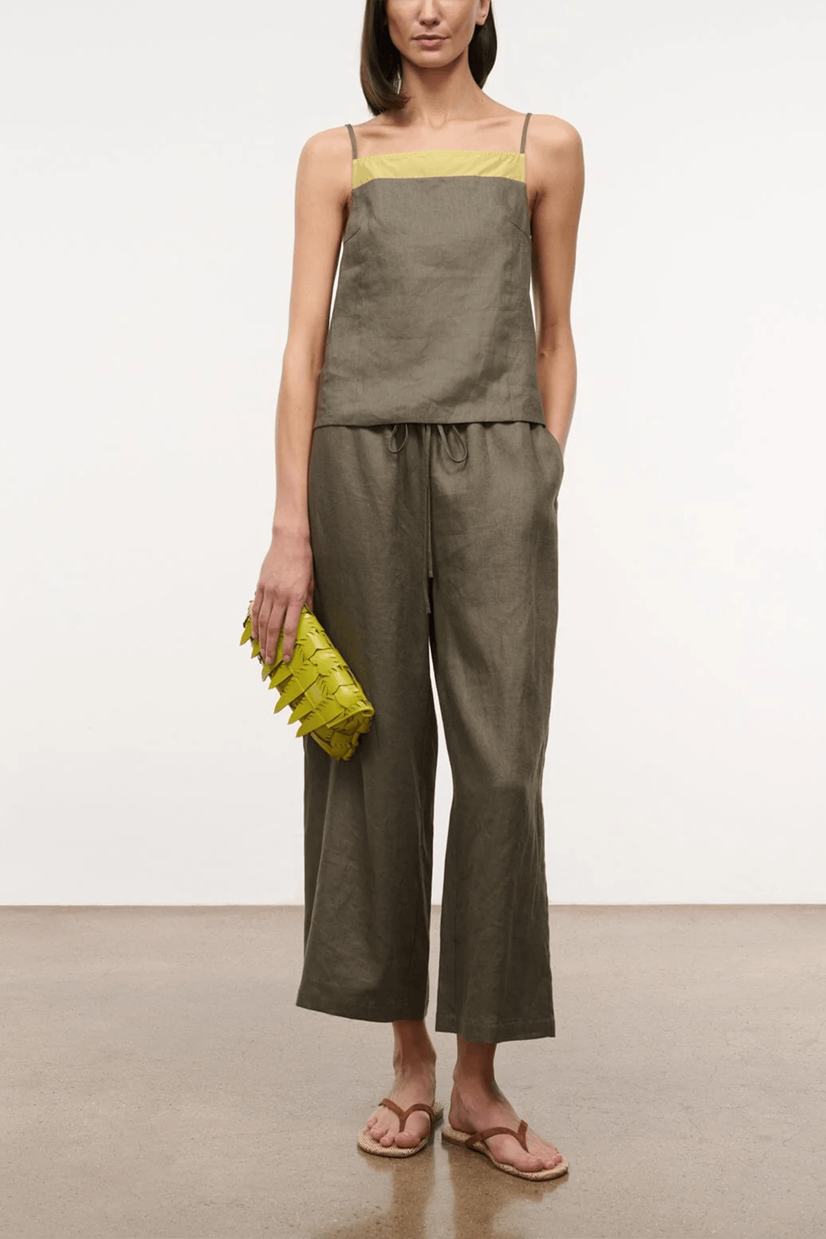 The Staud Maisie Linen Top is a must-have piece from their Spring 26 Collection. This tank features a boxy silhouette with with an open tie back. Wear yours with the matching pants and flats.