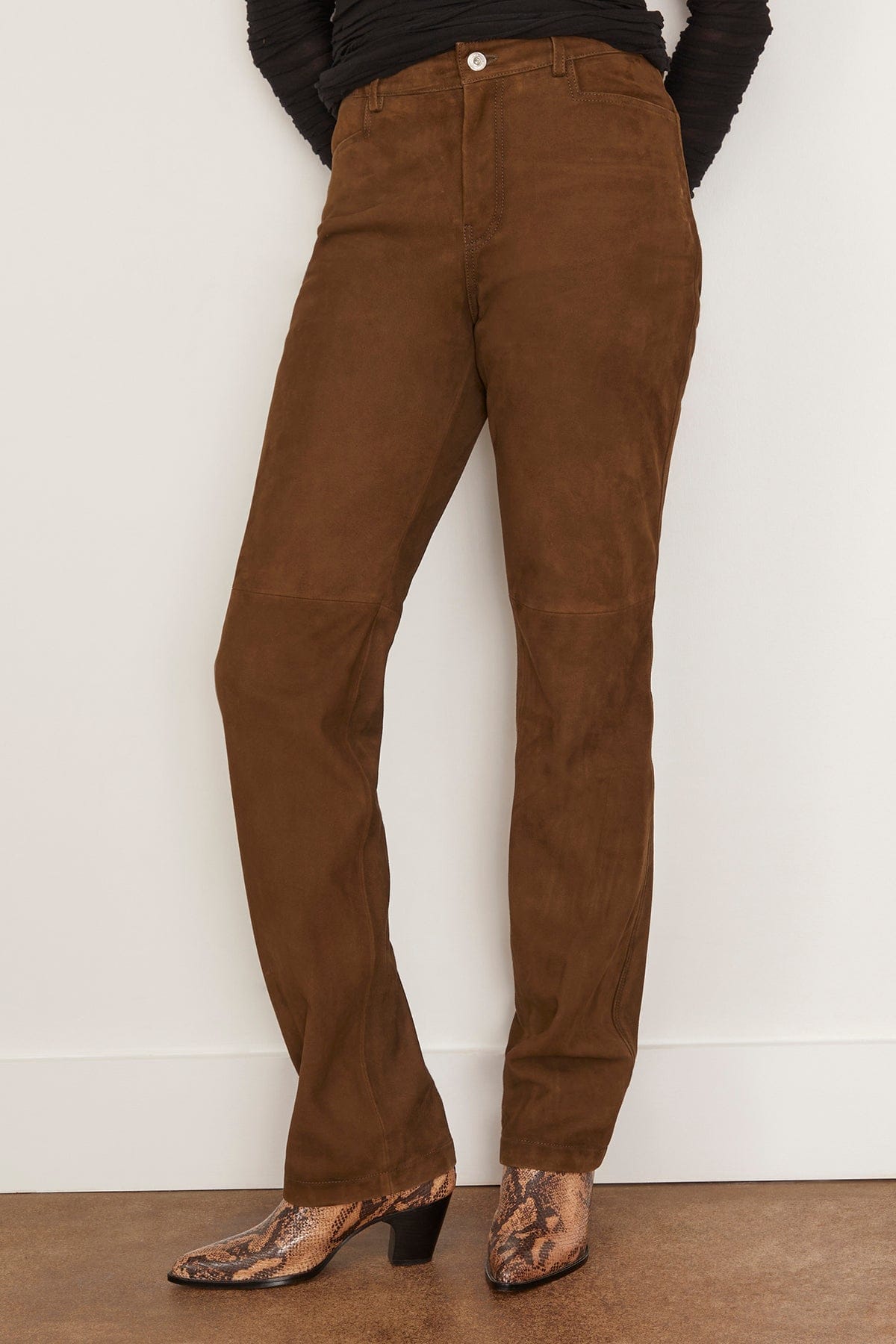 The Proenza Sschouler Maxine Pant in Suede is cut to a high-waist silhouette that falls straight through the leg. Finished with a logo-debossed patch at the back.