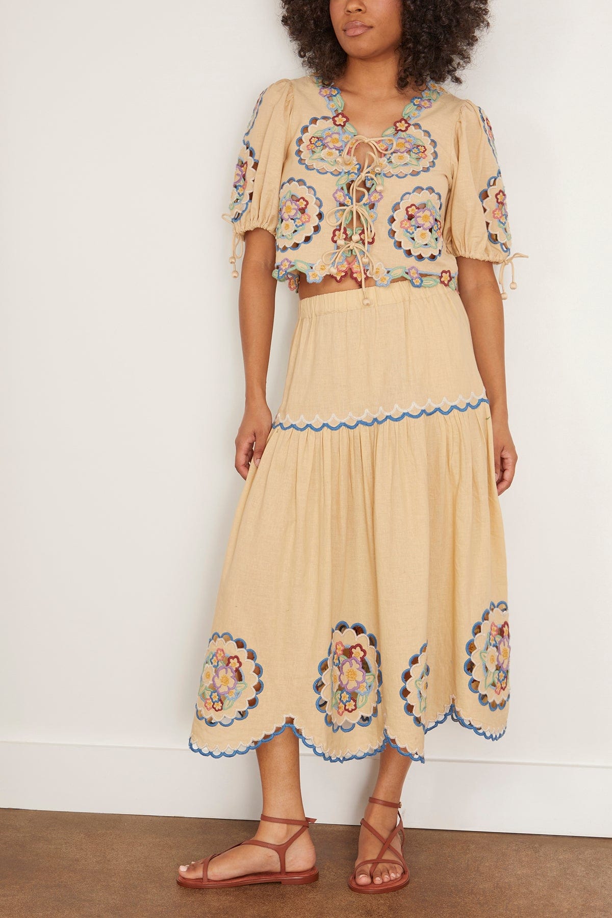 The SEA Melinda Embroidered Skirt features the bohemian flare you love from this designer. This midi skirt has floral embroidery with a scalloped hemline. Wear yours with a blouse and sandals.