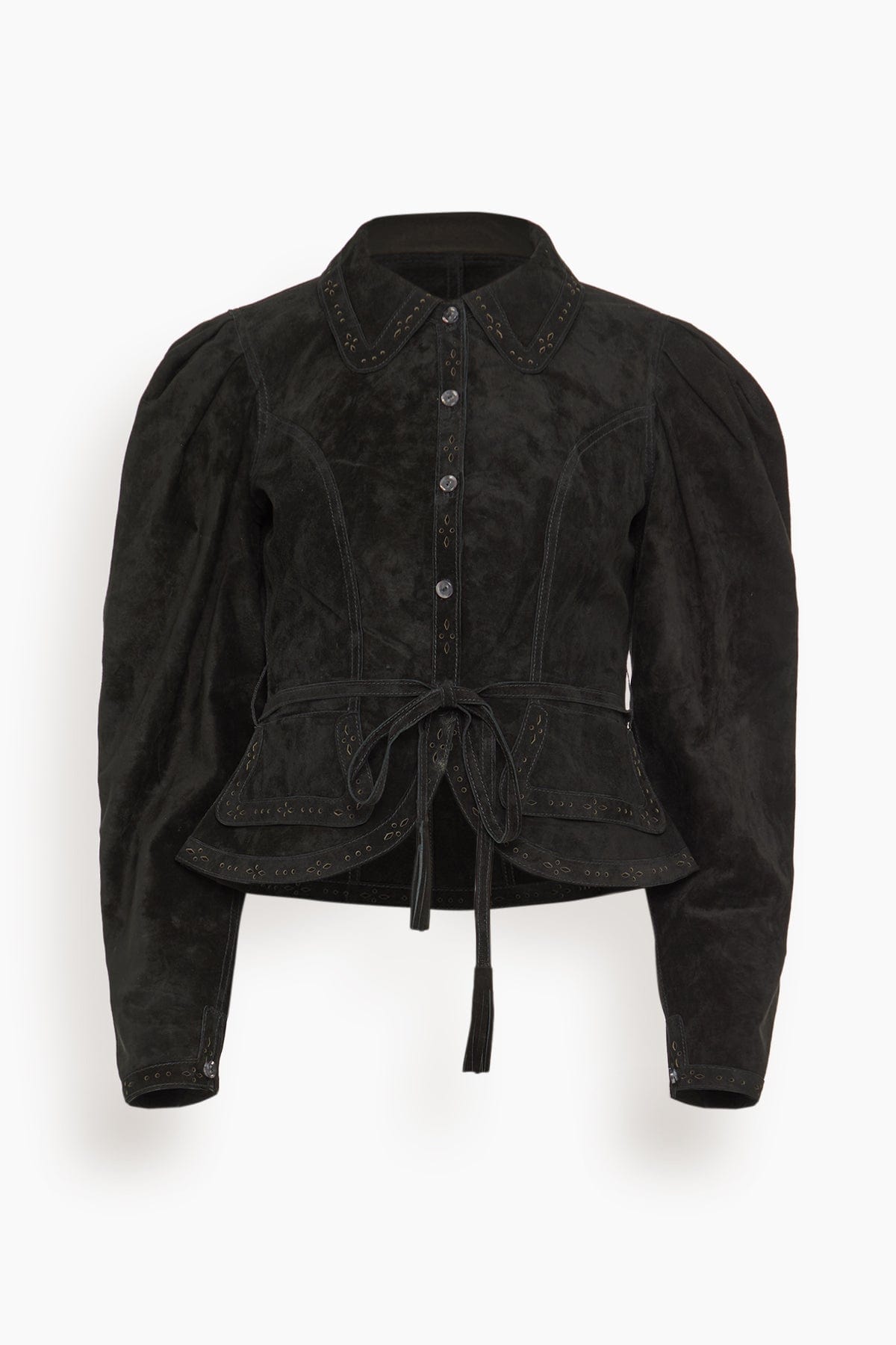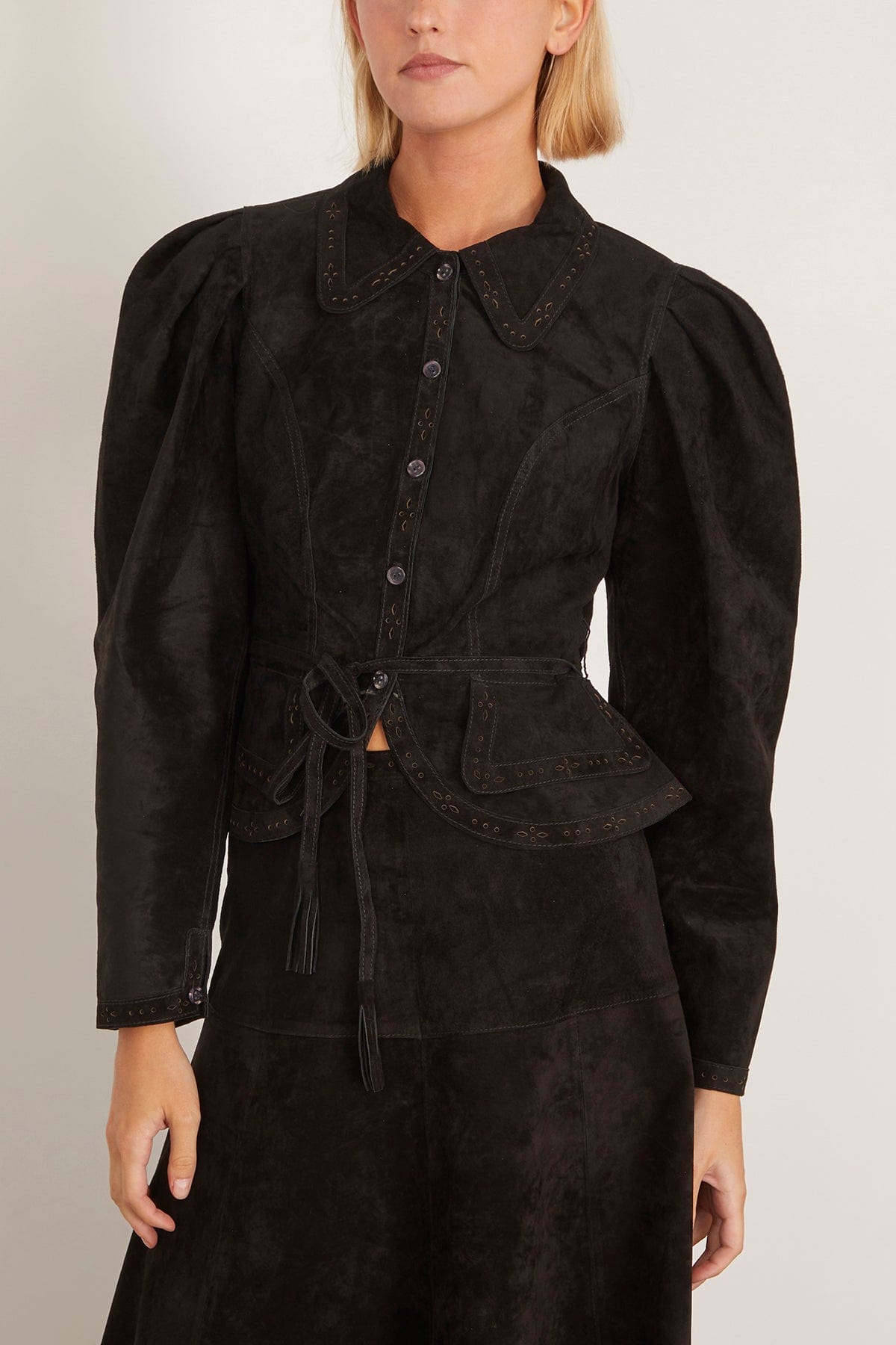 The Hunter Bell Murphey Jacket features the feminine flare you love from this designer. This jacket is crafted in suede with a cropped silhouette and curved hemline. Wear yours with a skirt and boots.