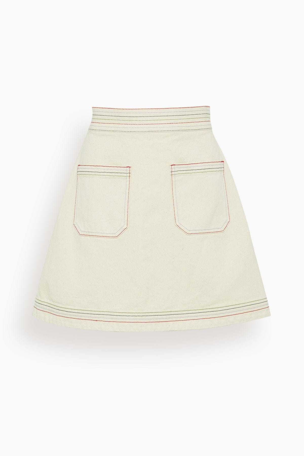 The Alemais Norma Denim Mini Skirt is a twist on a classic. This denim skirt features a high rise with rainbow contrasting stitching. Wear yours with a blouse and flats.