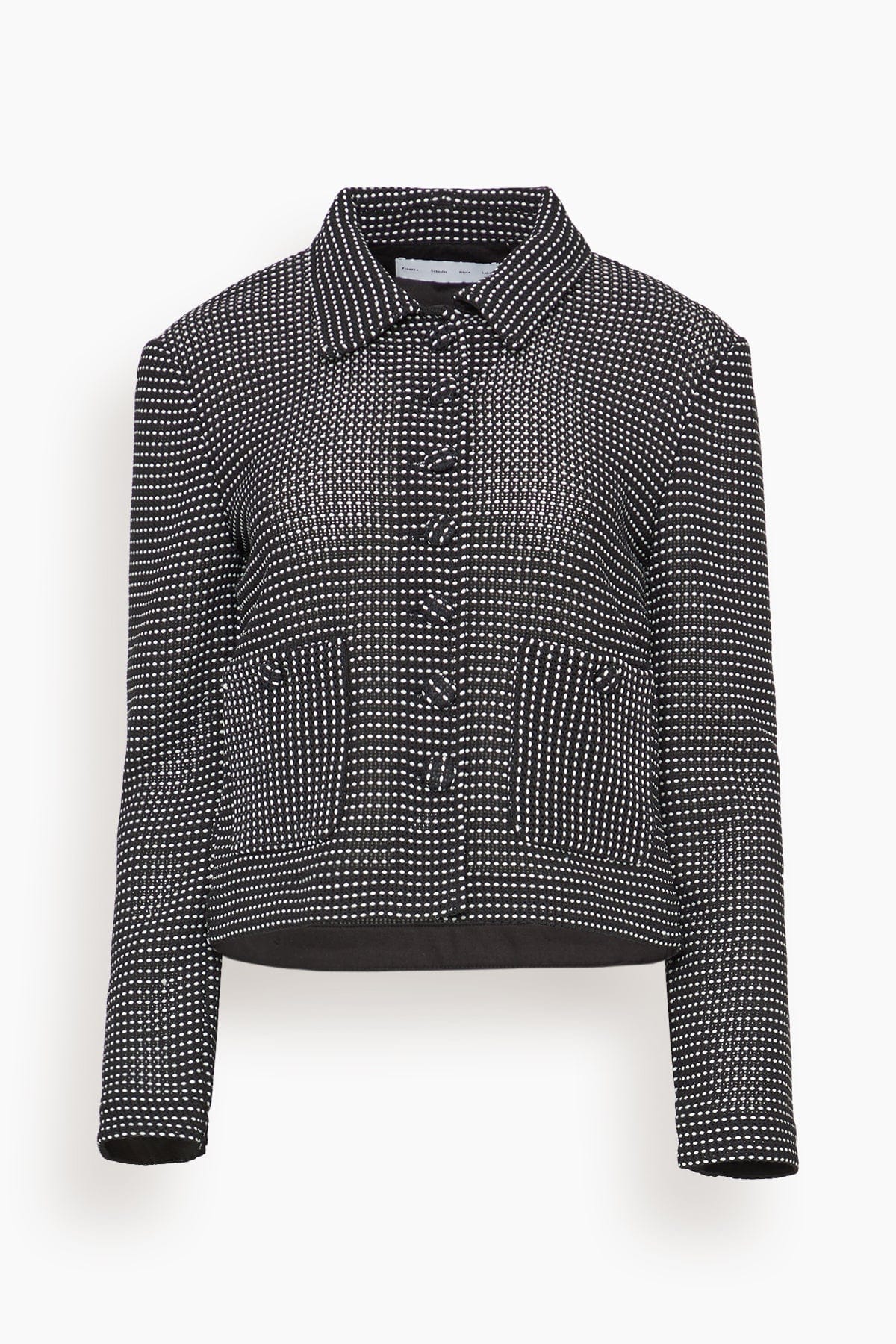 The Proenza Schouler White Label Osler Jacket is a timeless addition to your wardrobe. This jacket feature a shrunken silhouette in a classic tweed. Wear yours with the matching skirt and boots.