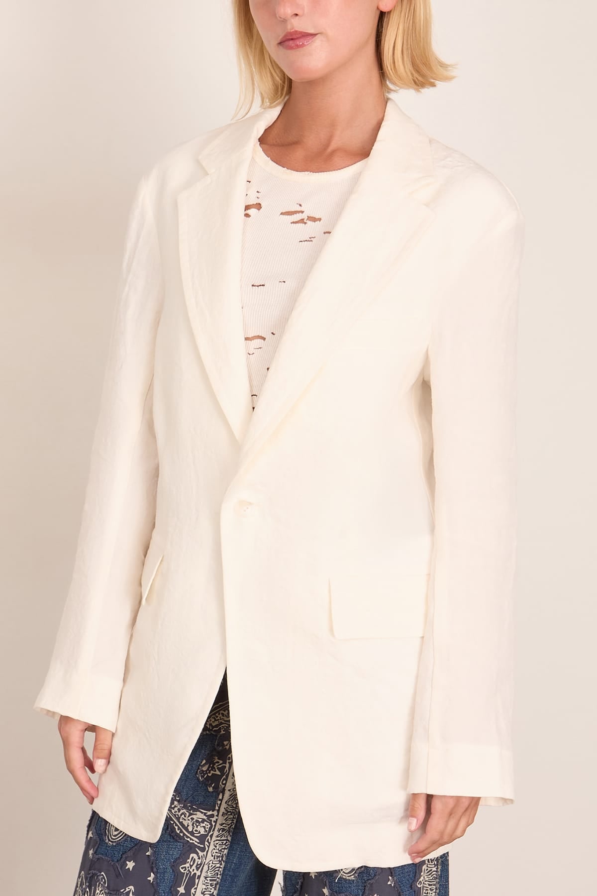 The R13 Oversized Ragged Blazer features the unique details you love from this designer. This blazer features an oversized fit in a relaxed linen. Wear yours with a t-shirt and jeans.